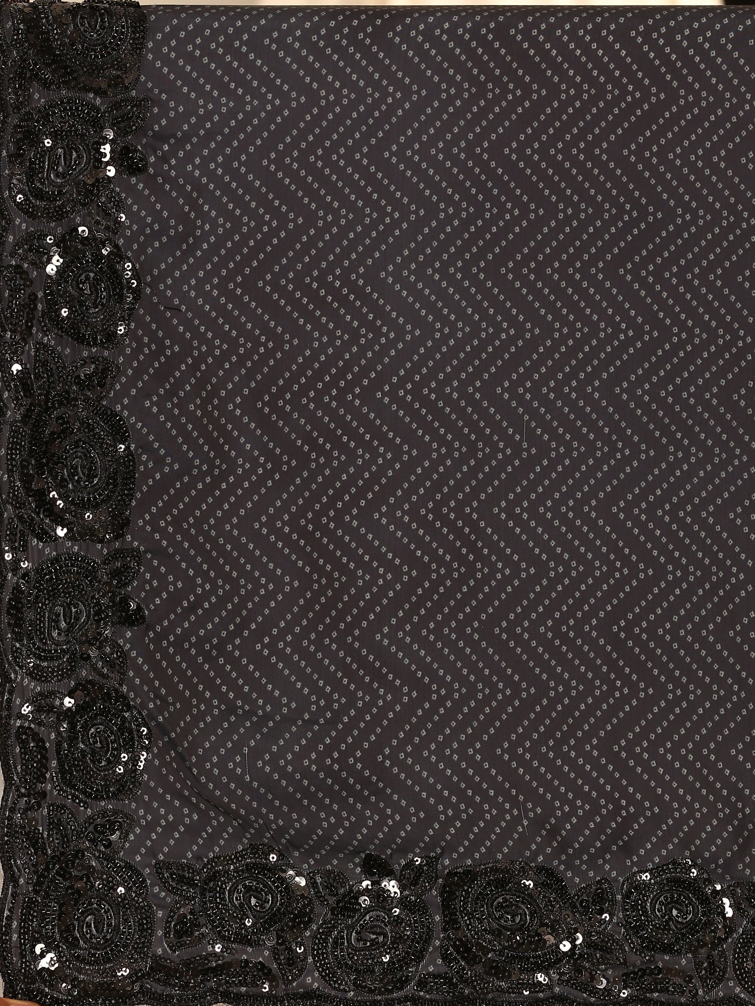 Black & white satin printed saree with hand embroidery & ready made blouse