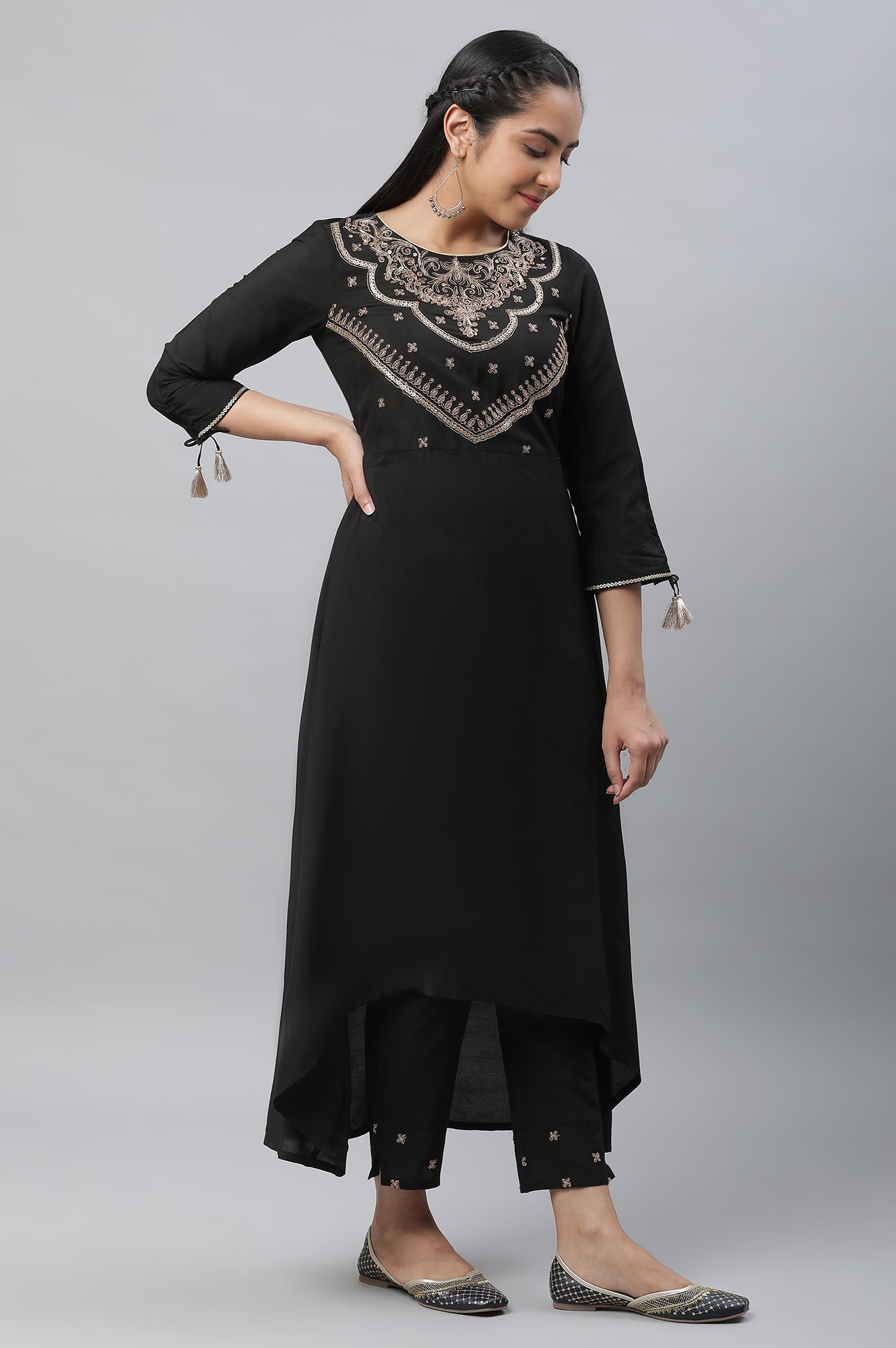 Black Zari Embellished Kurta Pants Dupatta Set