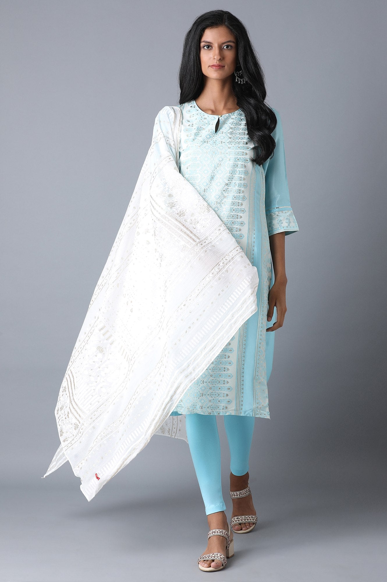 Blue Ankle Length Tights In Mid-Rise And Elasticated Waistband.