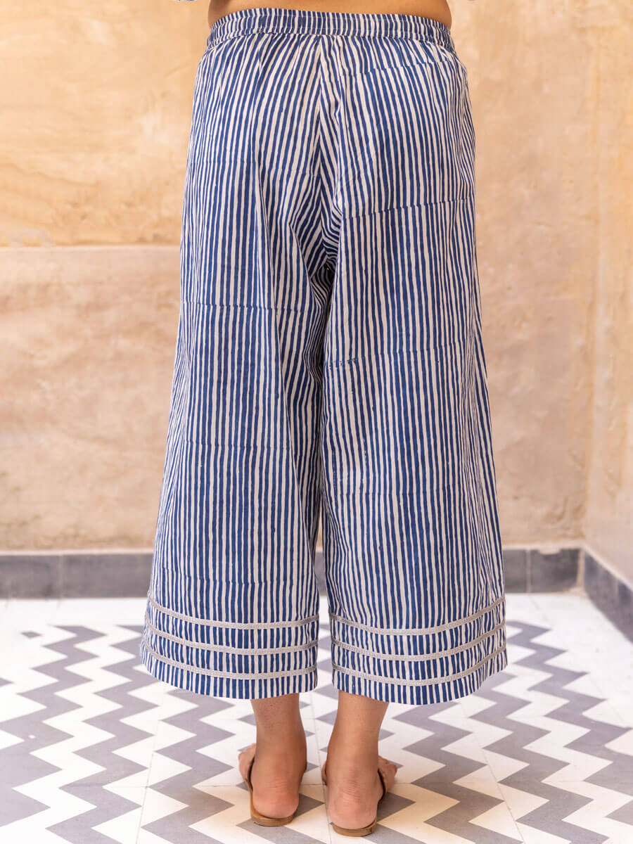 Blue Bliss Stripes Modal Palazzo Pants