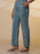 Blue Embroidered Seer Sucker Kurta, Printed Palazzo and Dupatta Set