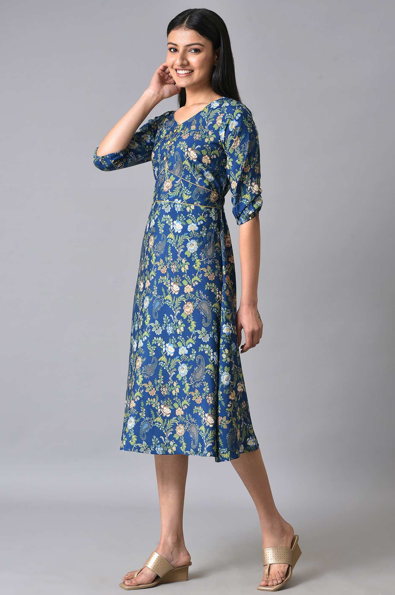 Get The Chic And Summer Comfy Look This A-Line Dress. It Has Floral Print And Crafted In American Crepe.