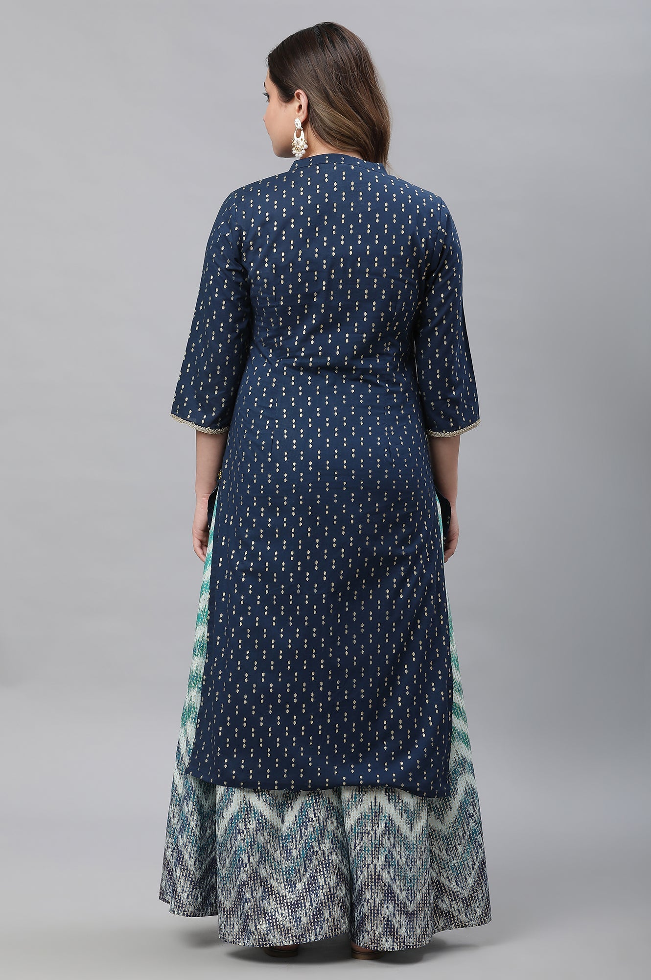 This straight cambric kurta with an ikat foil print is a stylish and remarkable piece for any festive wardrobe. The mandarin collar and placket detail add a touch of elegance to the kurta, while the lace patch around the collar, placket, and sleeves provide a delicate and feminine touch. The cambric fabric is lightweight, breathable, and comfortable, making it perfect for any season. The ikat foil print adds a unique and eye-catching touch to the kurta, making it perfect for any occasion.