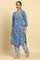 Blue Leaf Printed Straight Kurta And Pants Set
