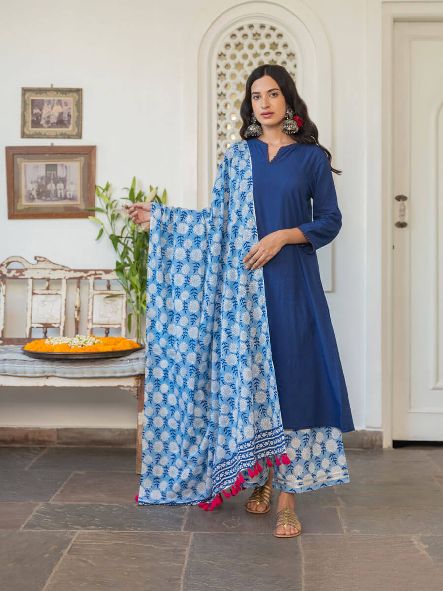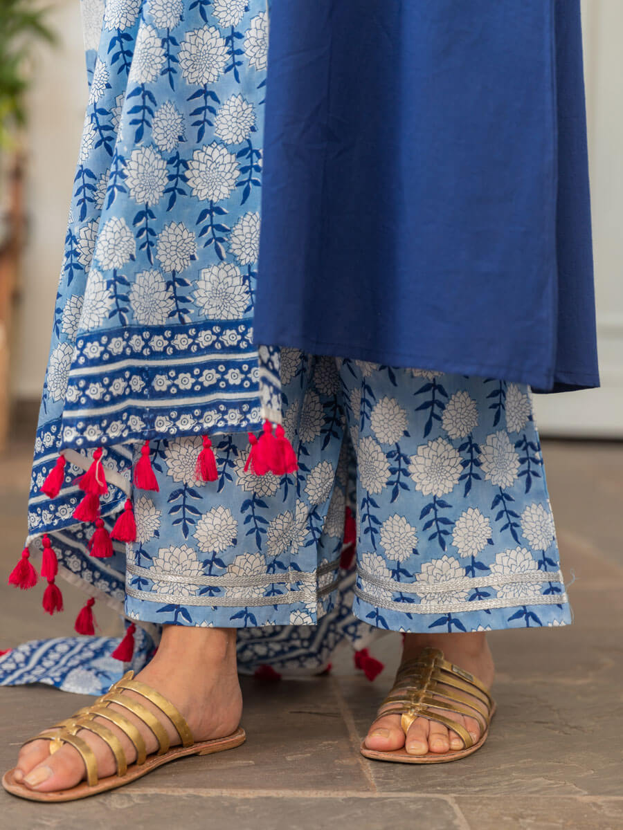 Blue Lily Cotton Palazzo Pants