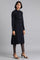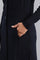 Blue long jacket with cable detail, button placket on the front & pocket detail.
