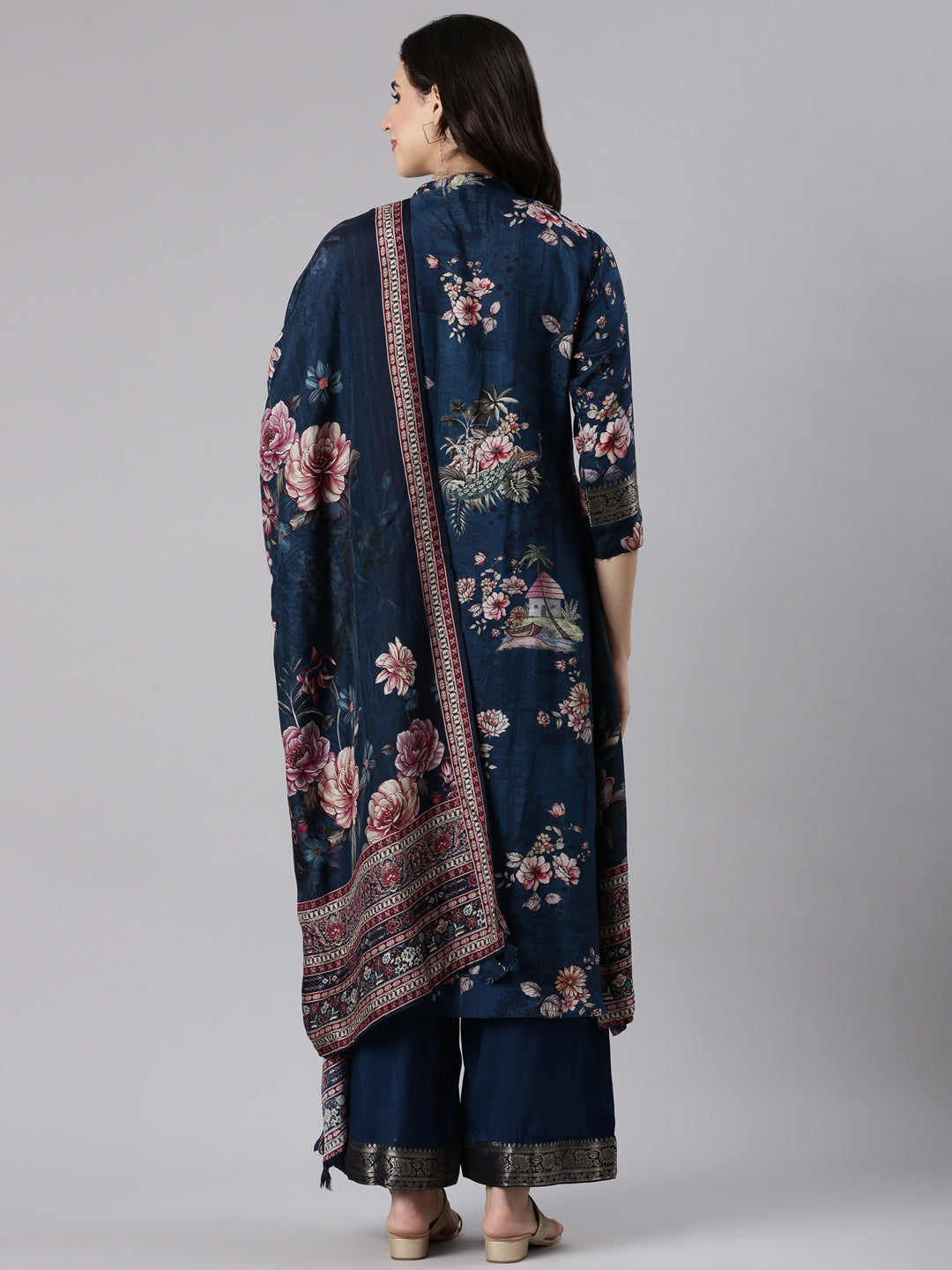 This Blue Muslin Printed Three Piece Set combines elegant comfort with timeless design. Crafted from soft muslin fabric, it offers breathable wear and a delicate texture perfect for all-day ease. The intricate blue print adds a refined touch, while the coordinated pieces ensure a polished, effortless look for any occasion.