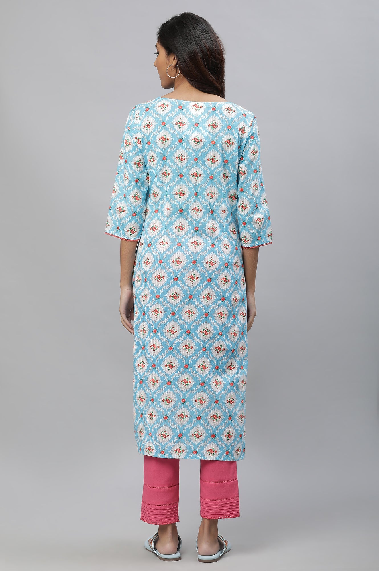 Give a breathe of freshness to your wardrobe with this distressed all over printed kurti with contrast lace insert. It is designed in straight silhouette and had round neckline.