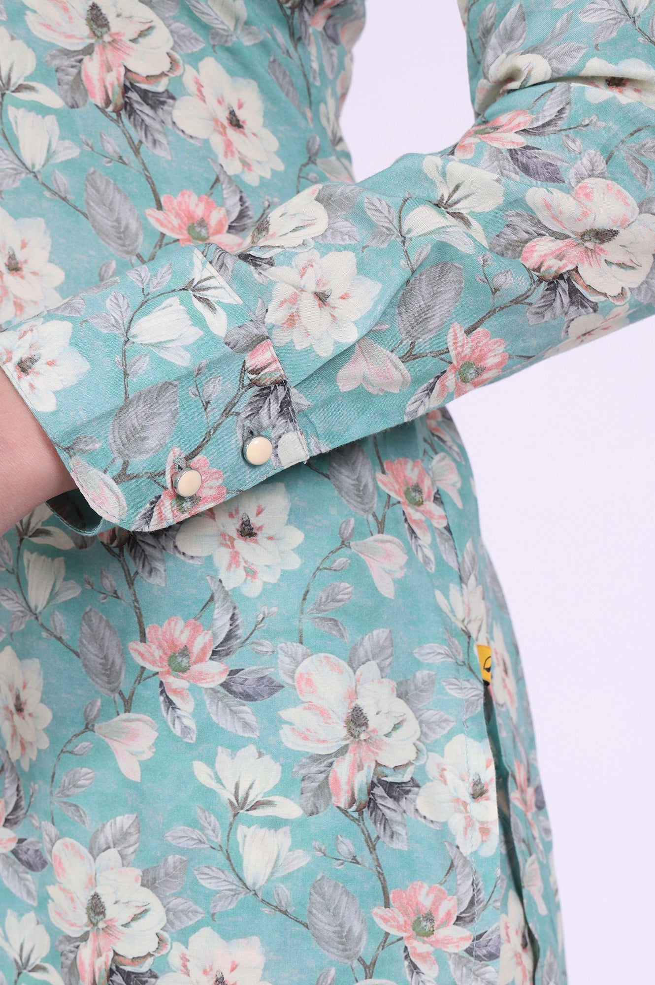 Blue Printed Straight Kurta with Palazzo & Dupatta Set