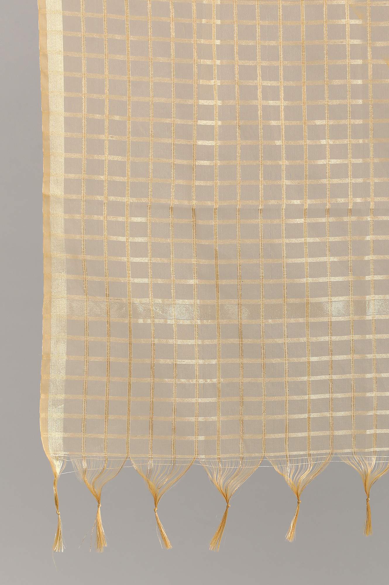 This set has a round neck blue printed kurta with placket detail and embellished neckline, solid yarn-dyed trousers and yarn-dyed golden dupatta.