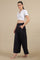 The side pleated western palazzo is a sophisticated and versatile piece, designed to elevate any wardrobe with its refined elegance. Featuring a sleek flat front and an elasticized back waist-belt, it ensures a flattering, comfortable fit that moves with you. The strategically placed slash pockets on the side seams enhance its practicality without compromising style. Crafted from premium fabric, this palazzo is the perfect choice for western wear occasions, offering both luxe appeal and effortless grace. Its versatility also makes it an excellent pairing for festive kurtas, seamlessly blending contemporary fashion with traditional charm.