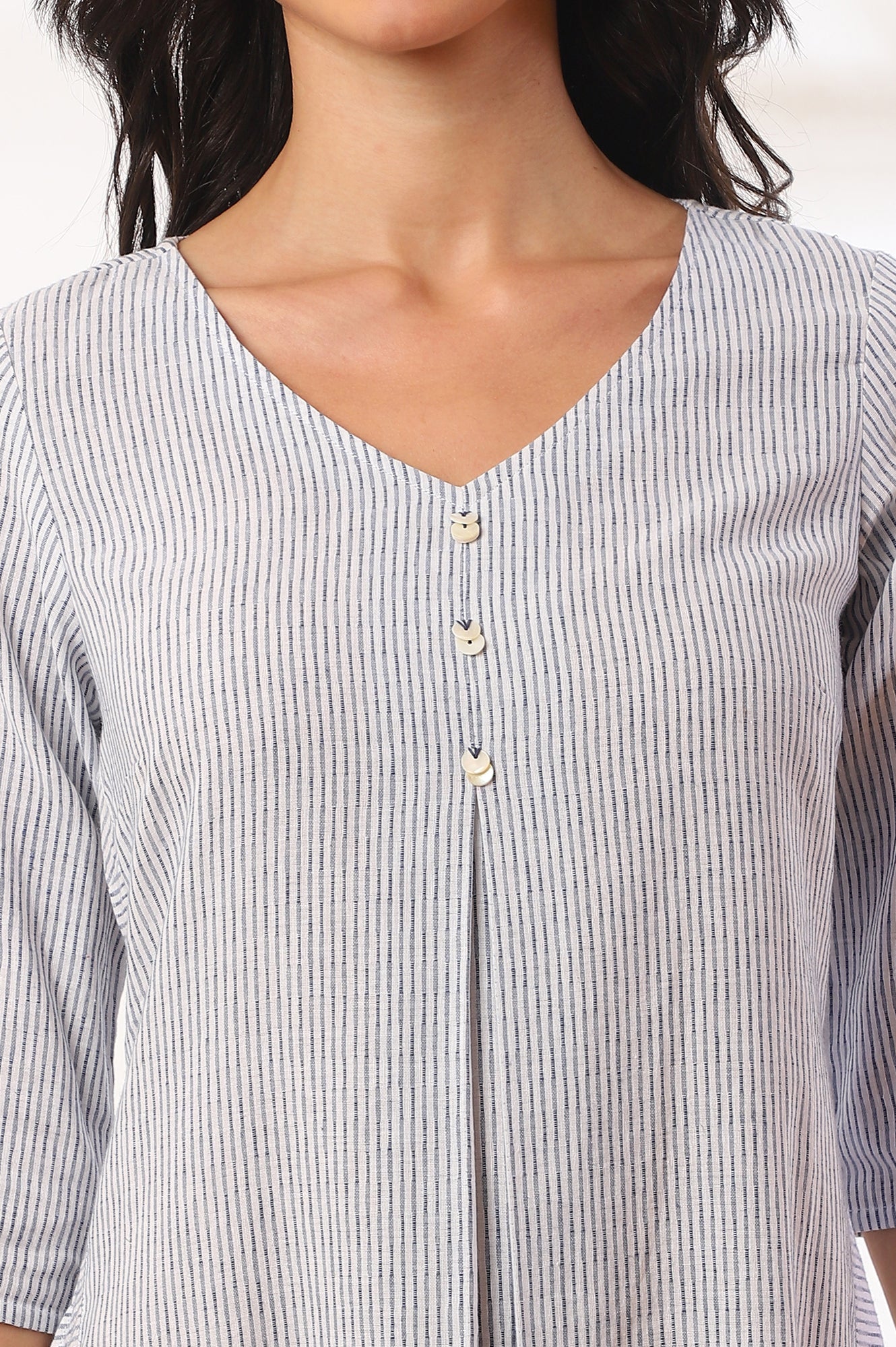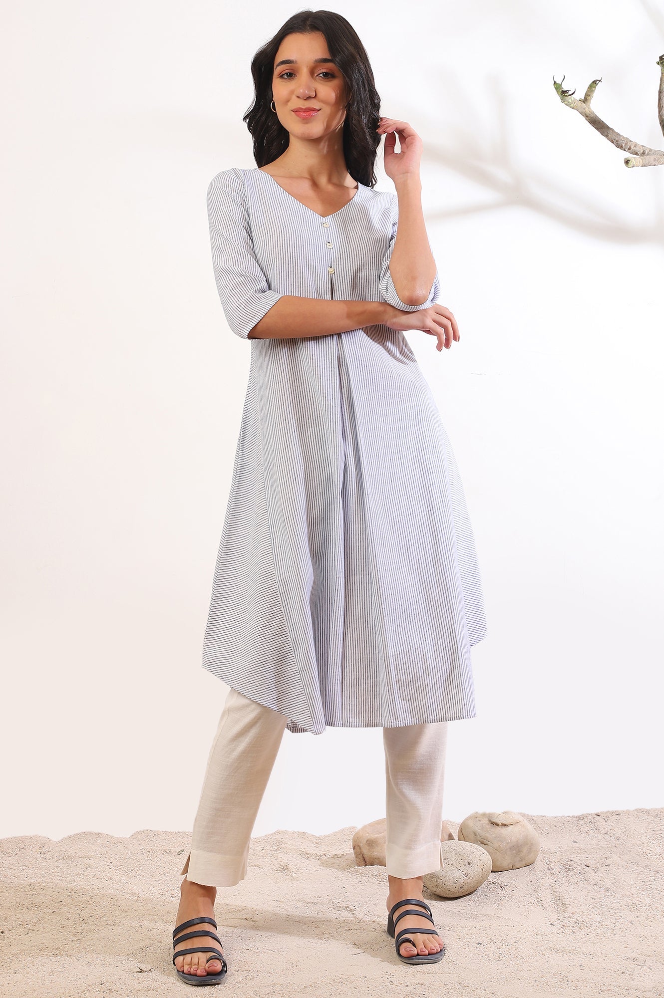 Blue Yarn Dyed A-Line Cotton Blend Kurta