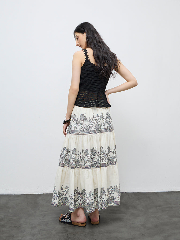 Bombay Paisley Off-White High-Rise Cotton Tiered Skirt