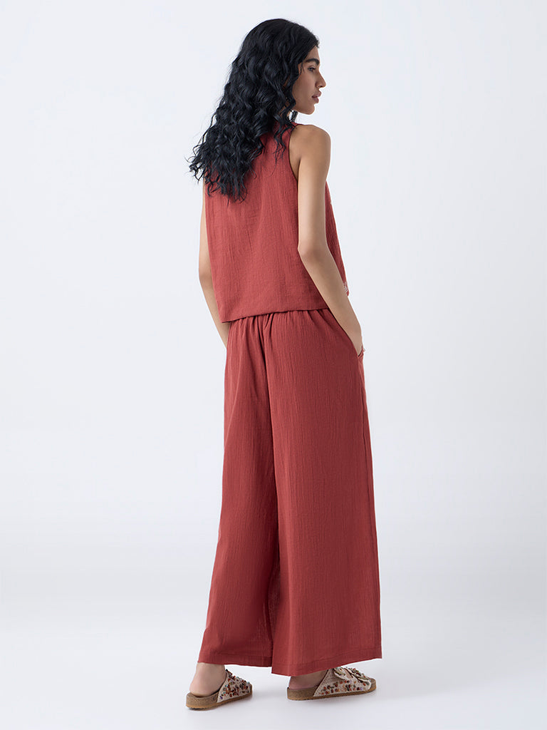Bombay Paisley Rust Embroidered Cotton Palazzos