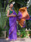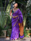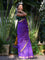 True to her name, Bondona wove this cotton-acrylic saree with prayerful attention to every detail. The rich purple body shimmers with allover gold zari floral motifs, finished with a solid gold pallu and matching tassels.