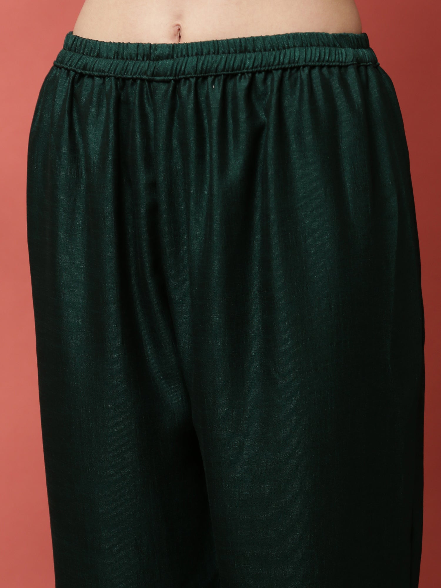 Bottle Green Vichitra Fabric Shoulder Kali With Embroiderey Duppata