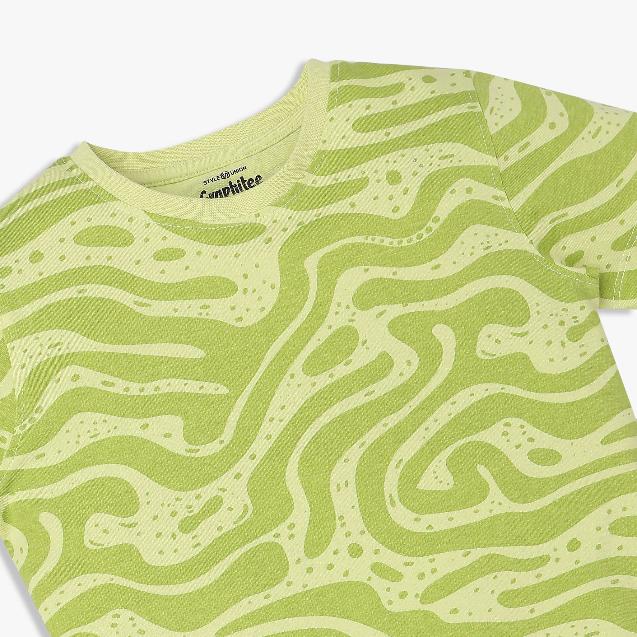 Discover the ultimate comfort and style with our Boy's Cotton Crew Neck Graphitee T-Shirt. Crafted from soft cotton, this regular fit tee features an eye-catching all-over print, perfect for any young trendsetter.