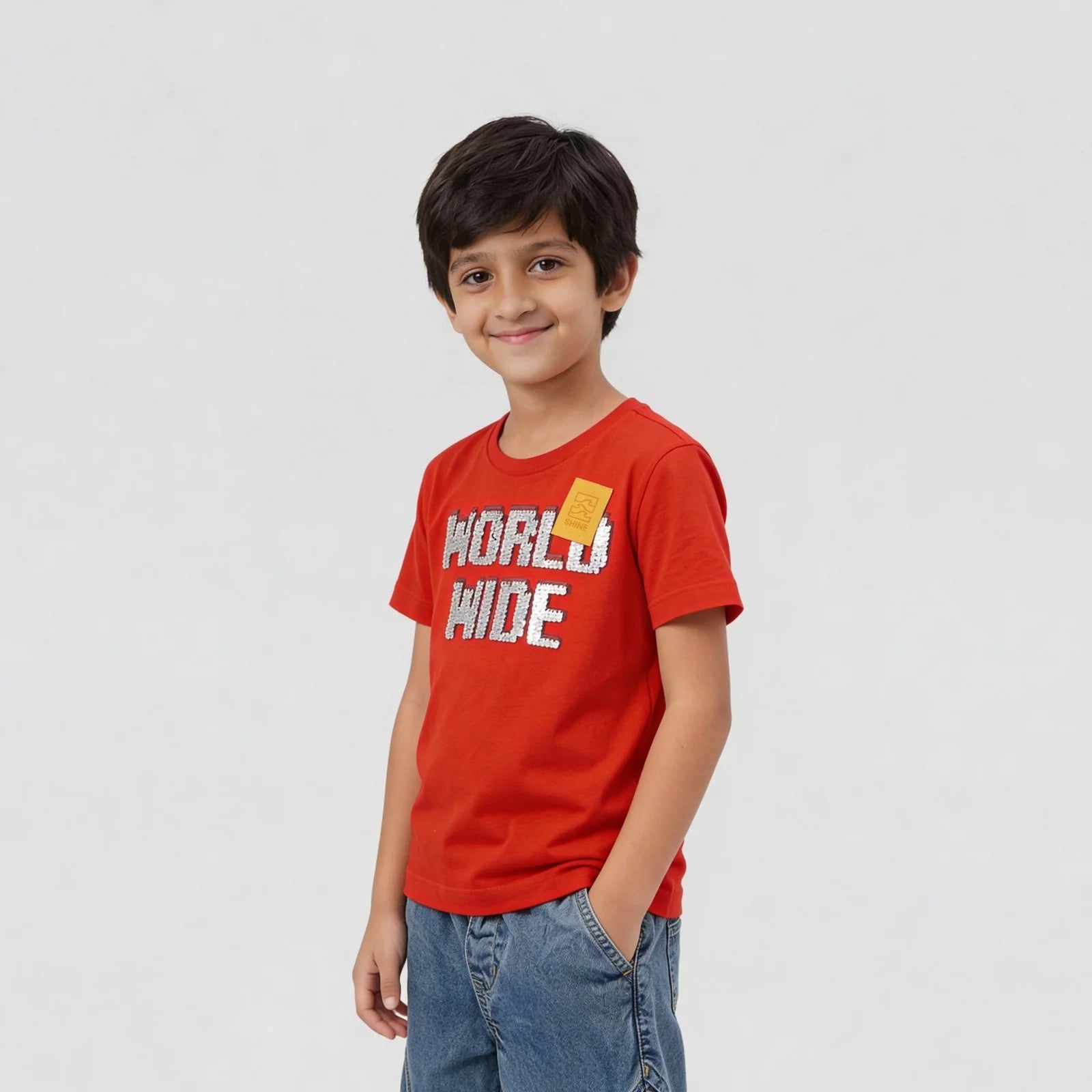 Elevate your child's wardrobe with our Boys Cotton Embellished Oversize T-Shirt. Crafted from high-quality cotton, this tee promises exceptional comfort and breathability for all-day wear. The embellished design adds a stylish touch, making it perfect for both casual outings and special occasions.