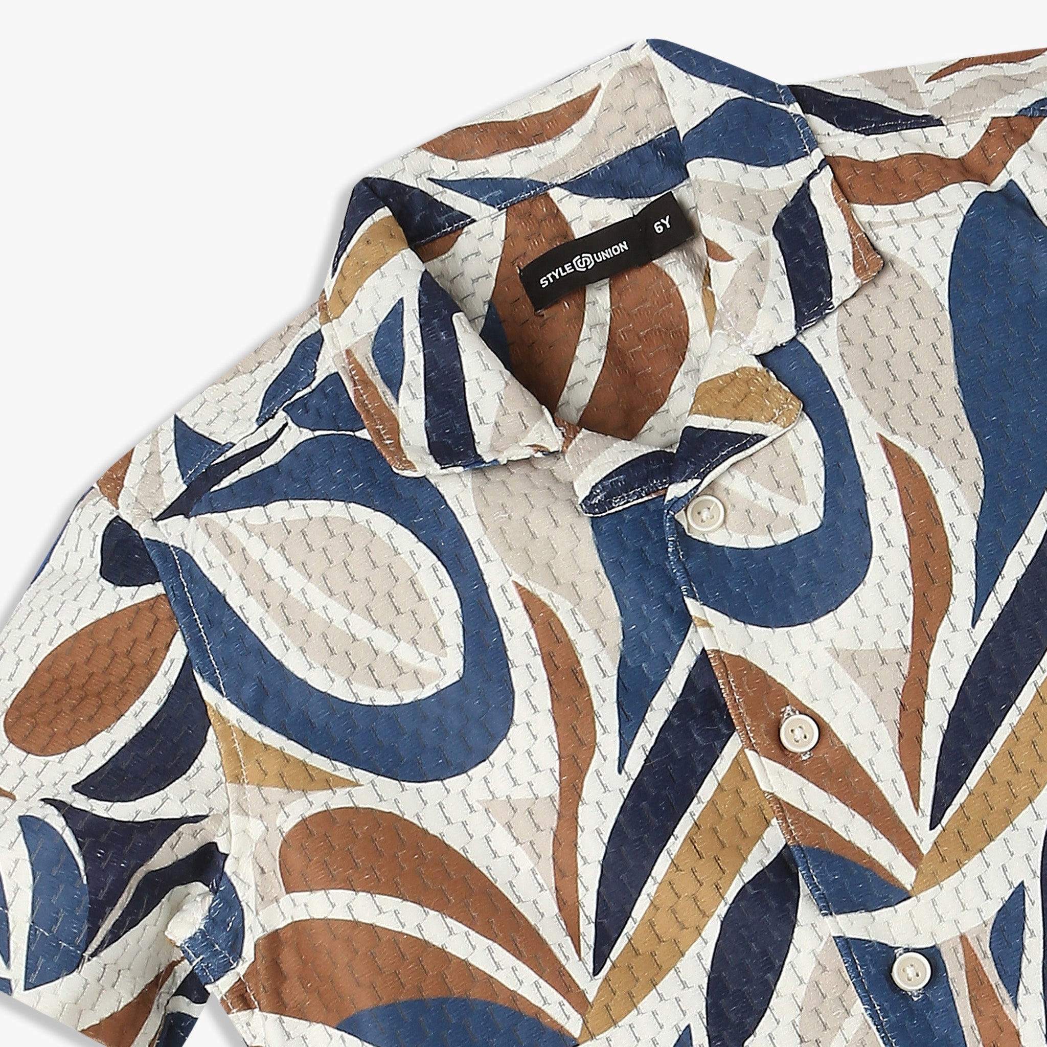 Experience the perfect blend of style and comfort with our Boys Printed Cuban Shirt. Crafted from 100% polyester, this shirt offers a soft touch against the skin, ensuring all-day comfort for your little one. The vibrant print and camp collar add a touch of fun and flair, making it a versatile choice for any occasion.