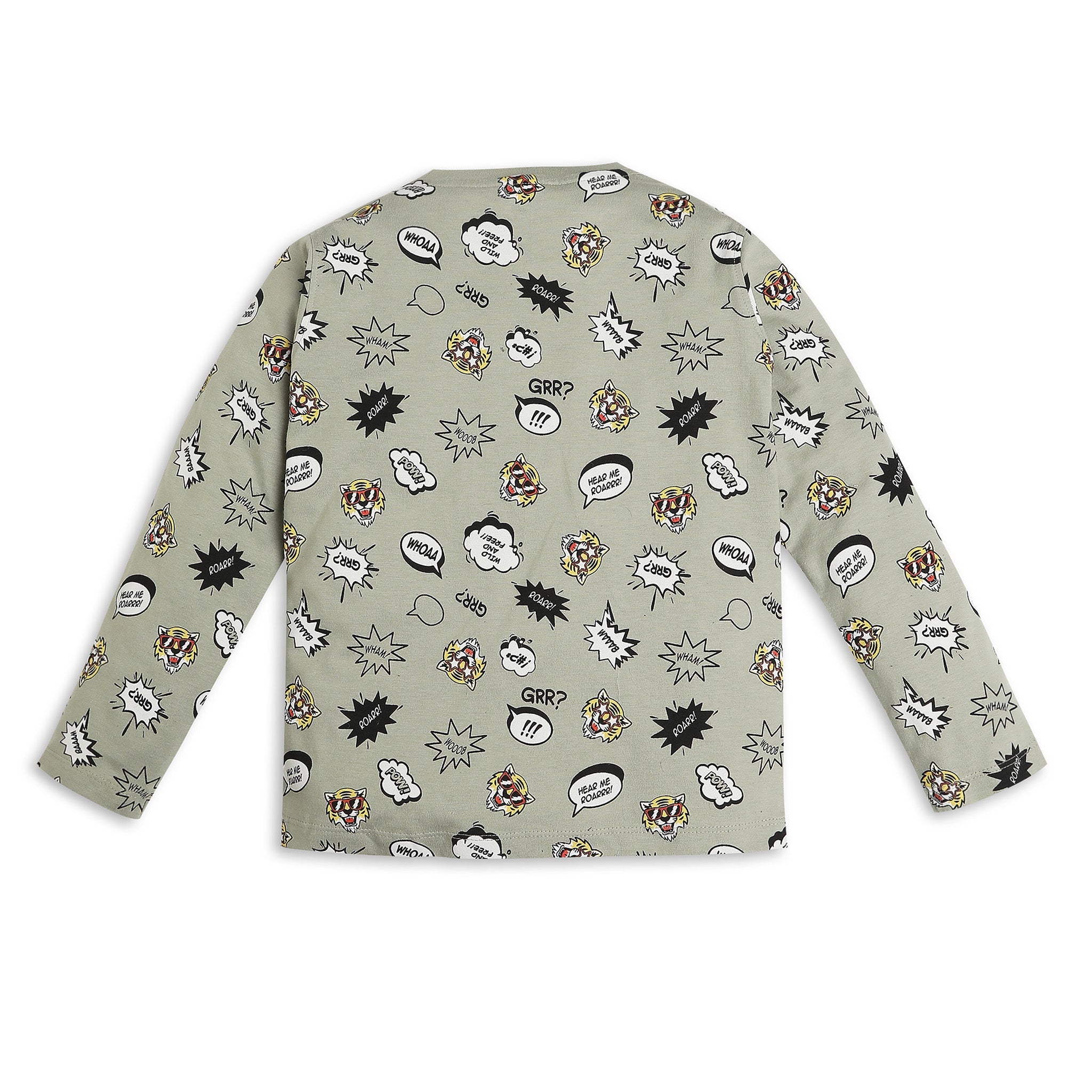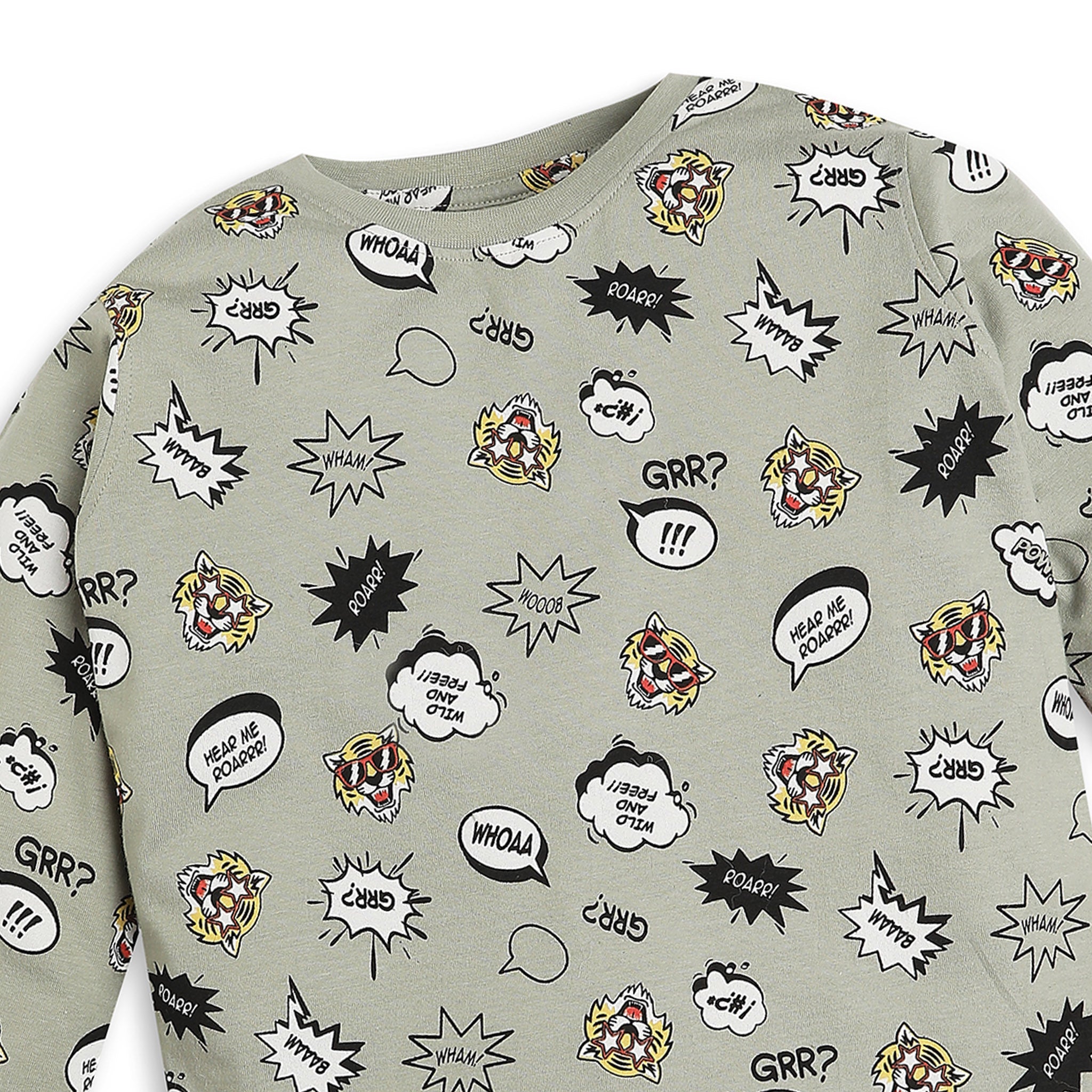 These printed pattern t-shirt with trackpant sleepwear set has crew neck and full sleeve. Made from cotton, your kid's feel comfortable wearing the product.