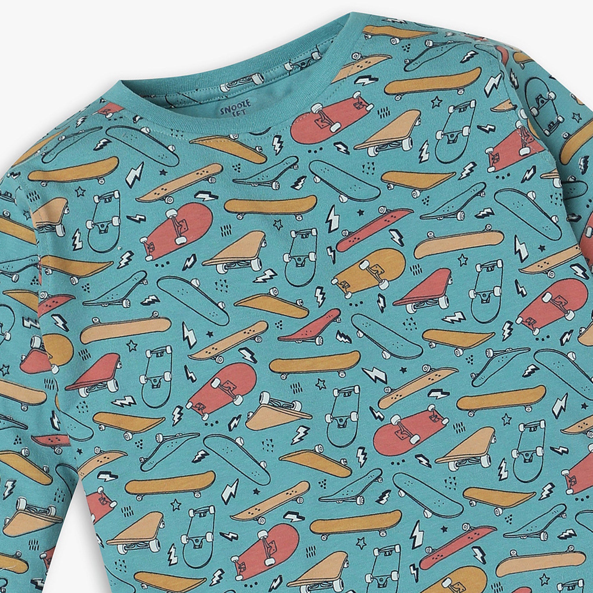 These printed pattern t-shirt with trackpant sleepwear set has crew neck and full sleeve. Made from cotton, your kid's feel comfortable wearing the product.