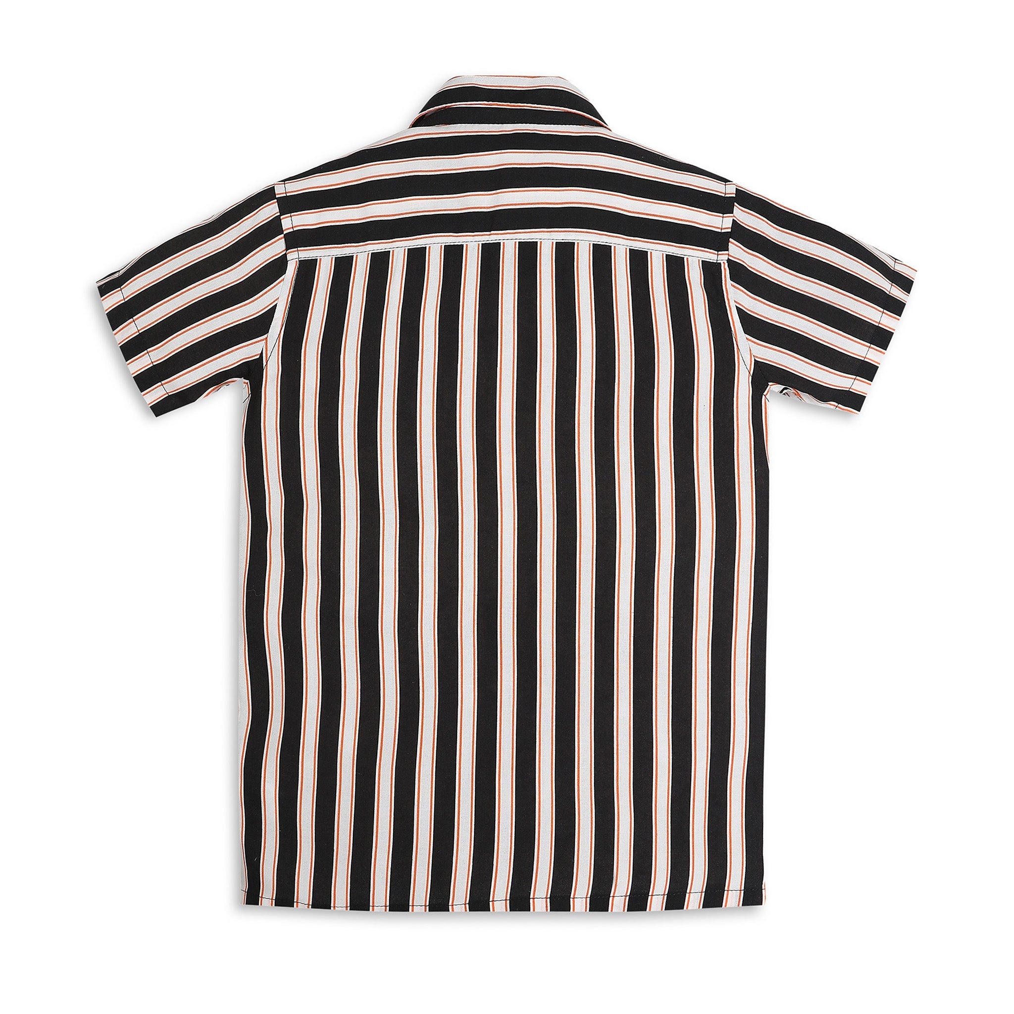 These striped pattern shirt has shirt collar and half sleeve. Made from rayon, your kid's feel comfortable wearing the product.