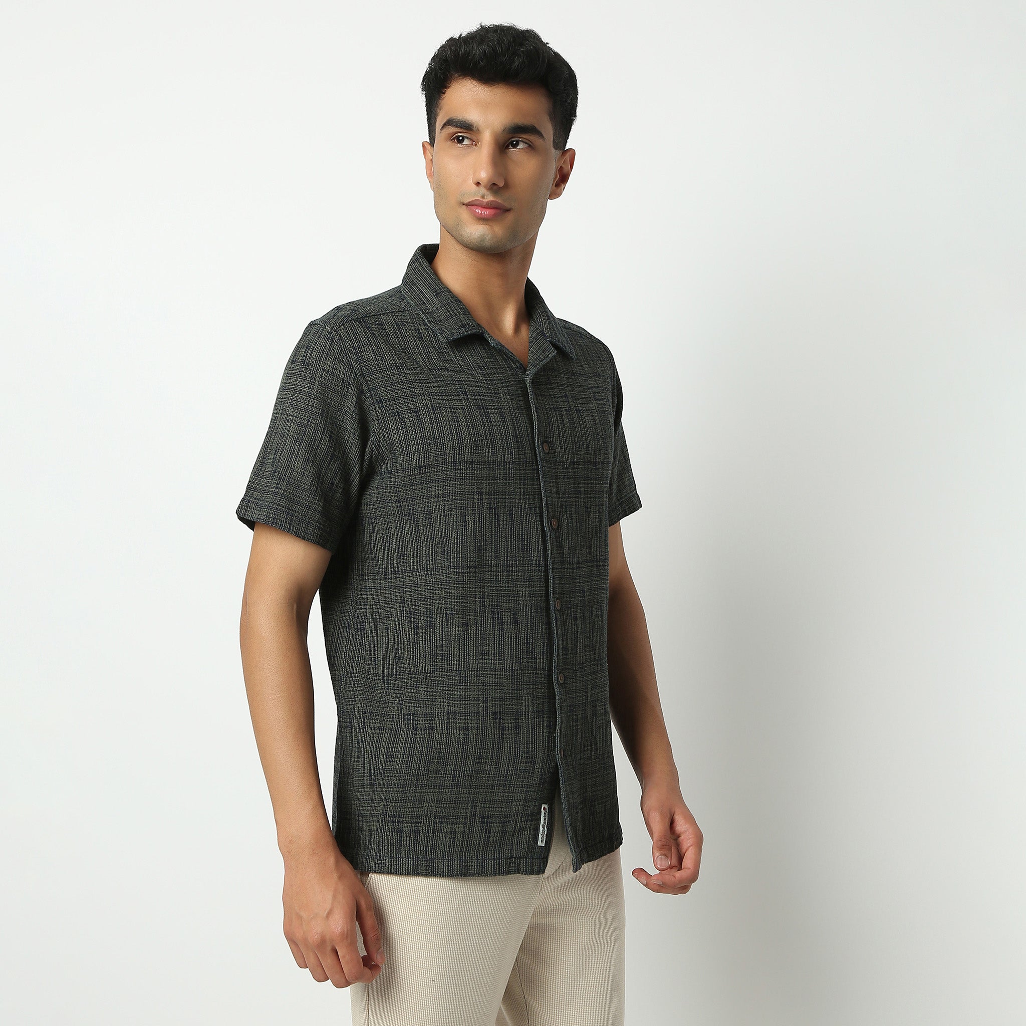 Camp Collar Half Sleeve Yarn Dyed Textured Mood Shirt