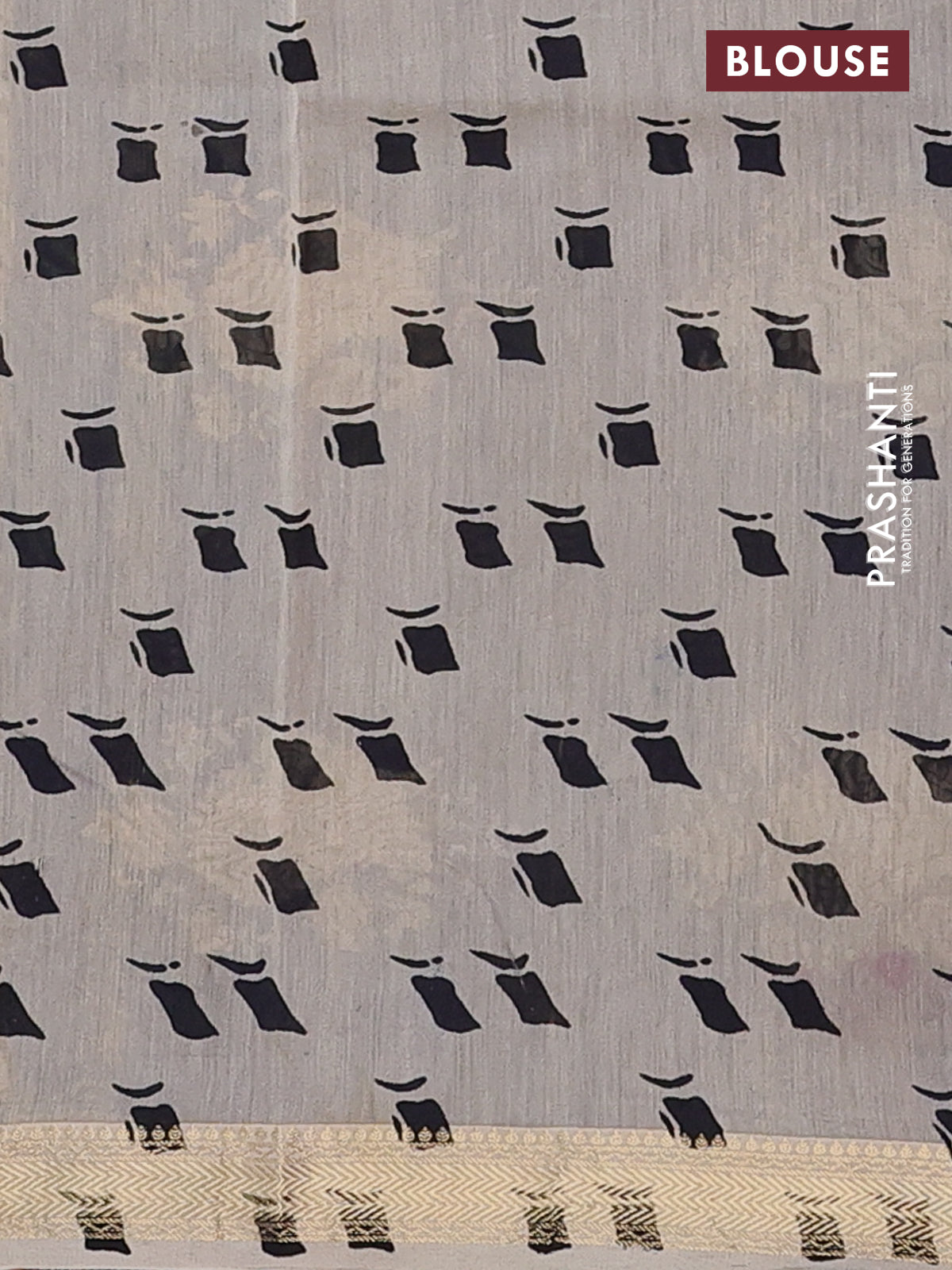Chanderi bagru saree beige and blue with allover floral butta prints and maheswari border
