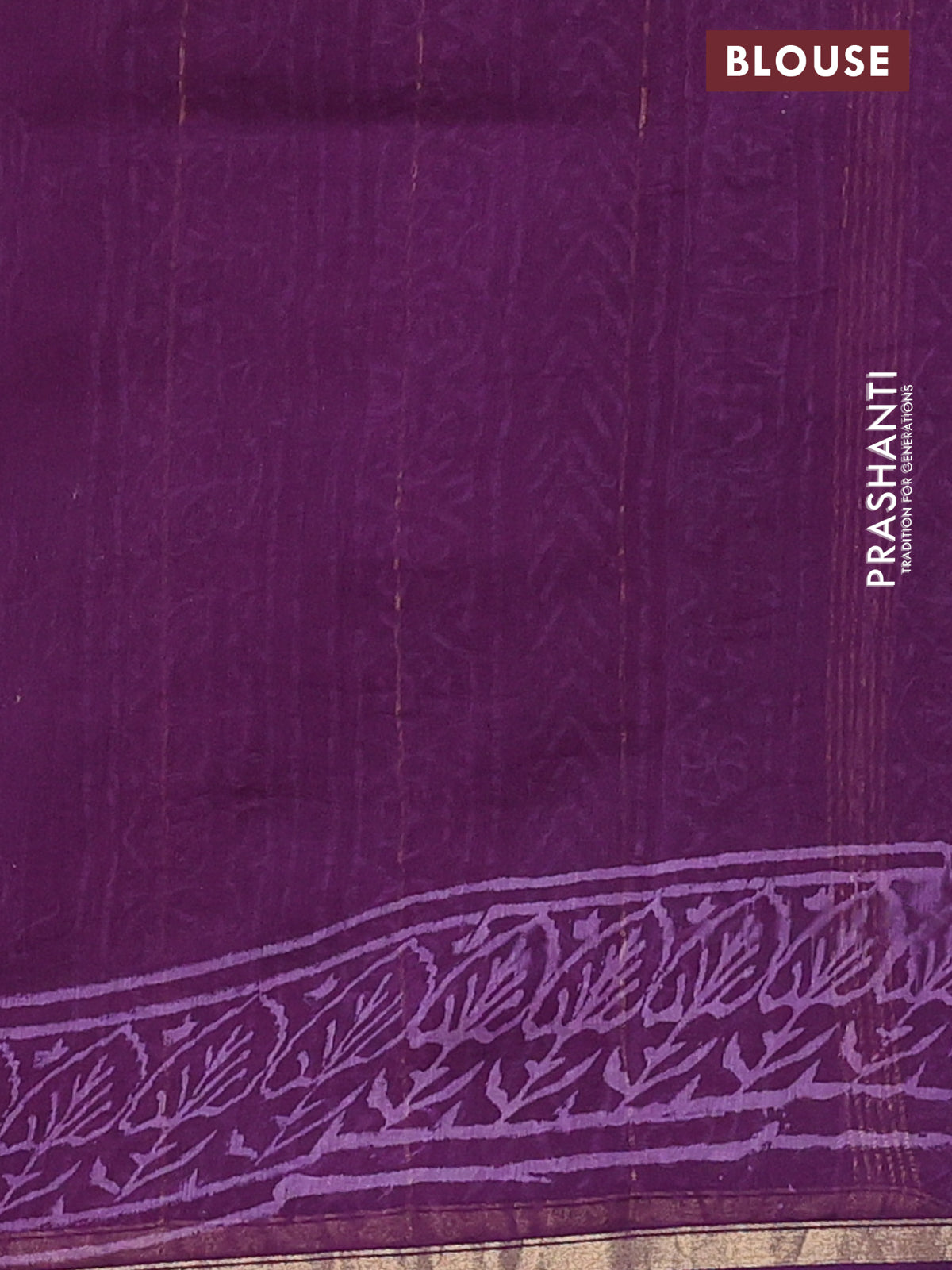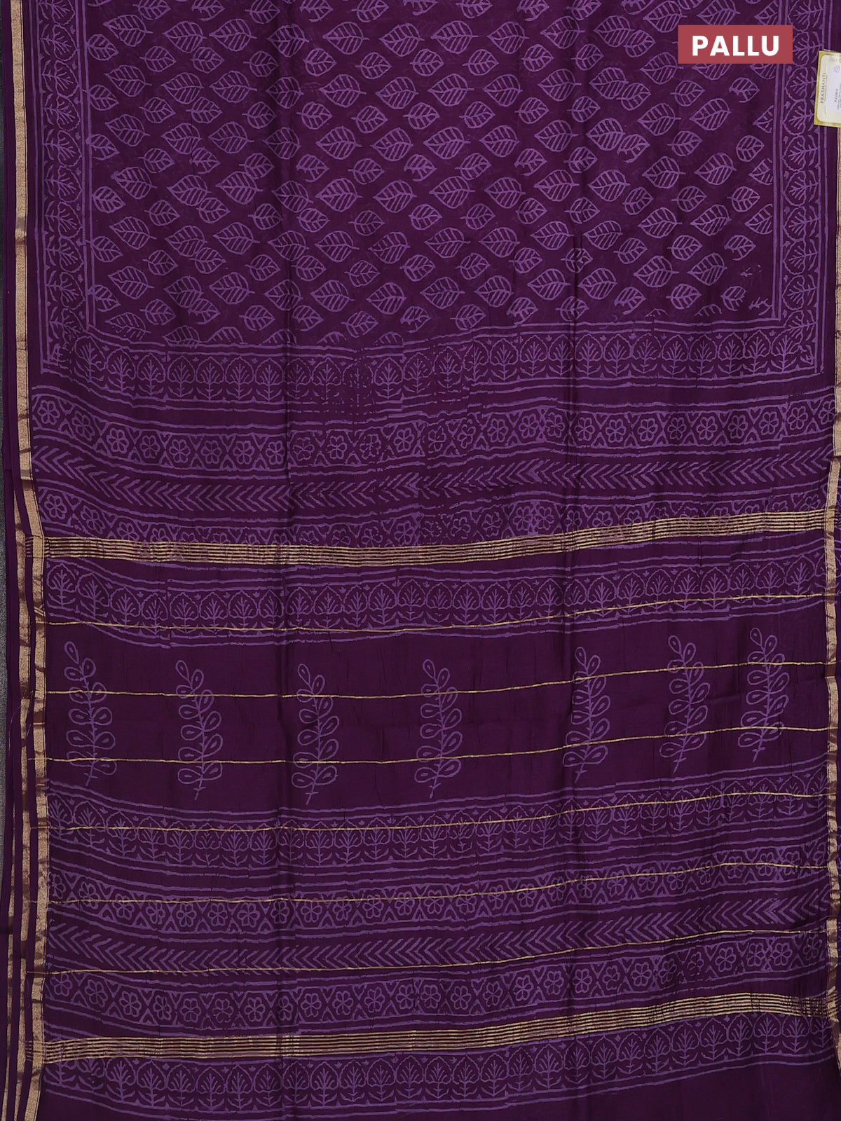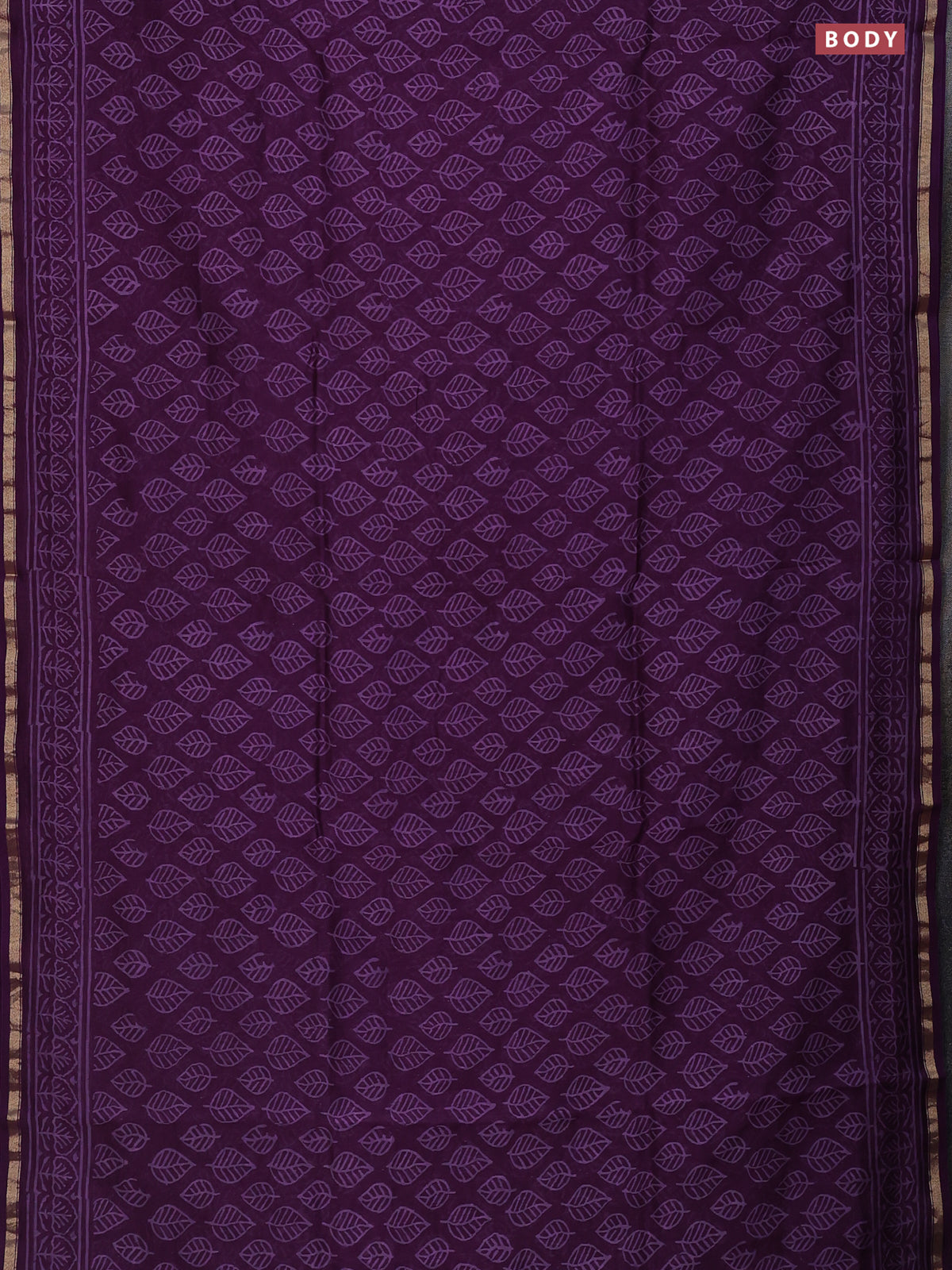 Chanderi bagru saree purple with allover leaf butta prints and small zari woven border