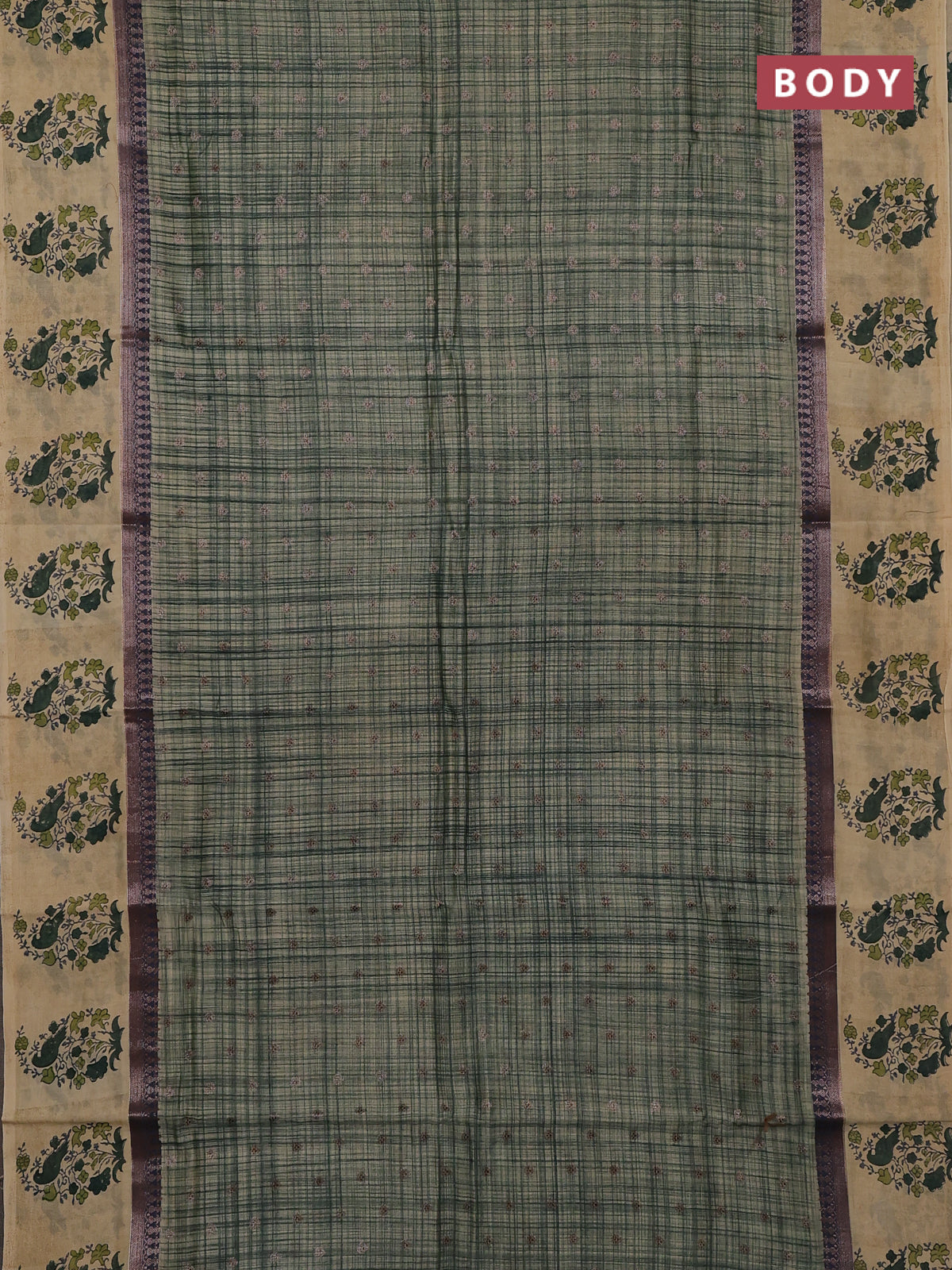 Chanderi silk cotton saree dark green and beige with allover zari buttas & prints and printed butta border