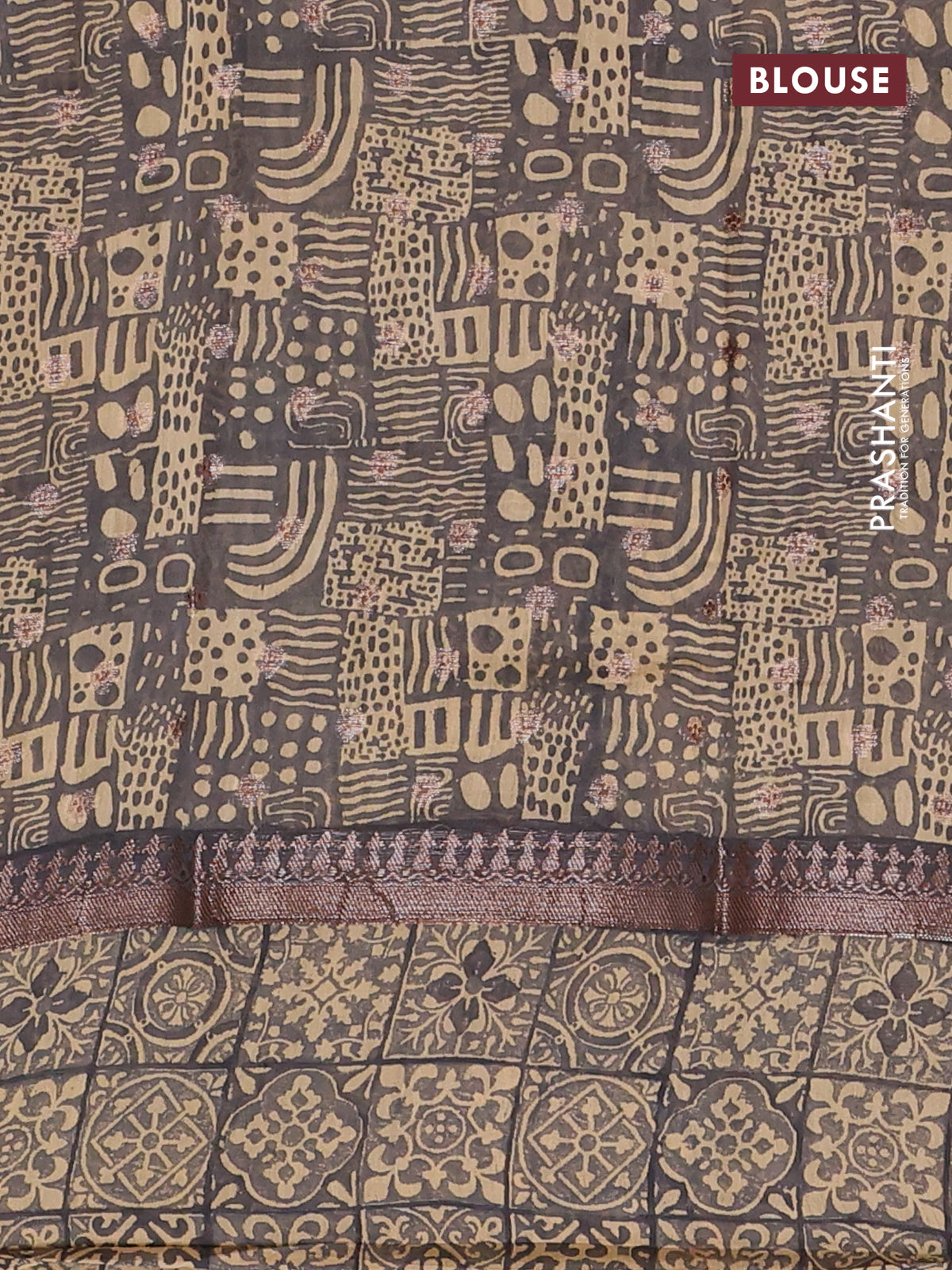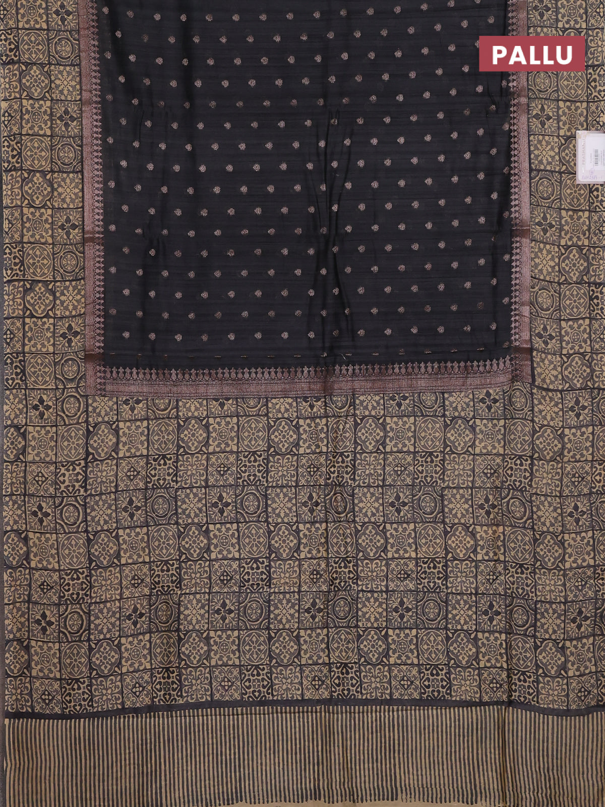 Chanderi silk cotton saree dark grey and beige with allover zari buttas and printed border