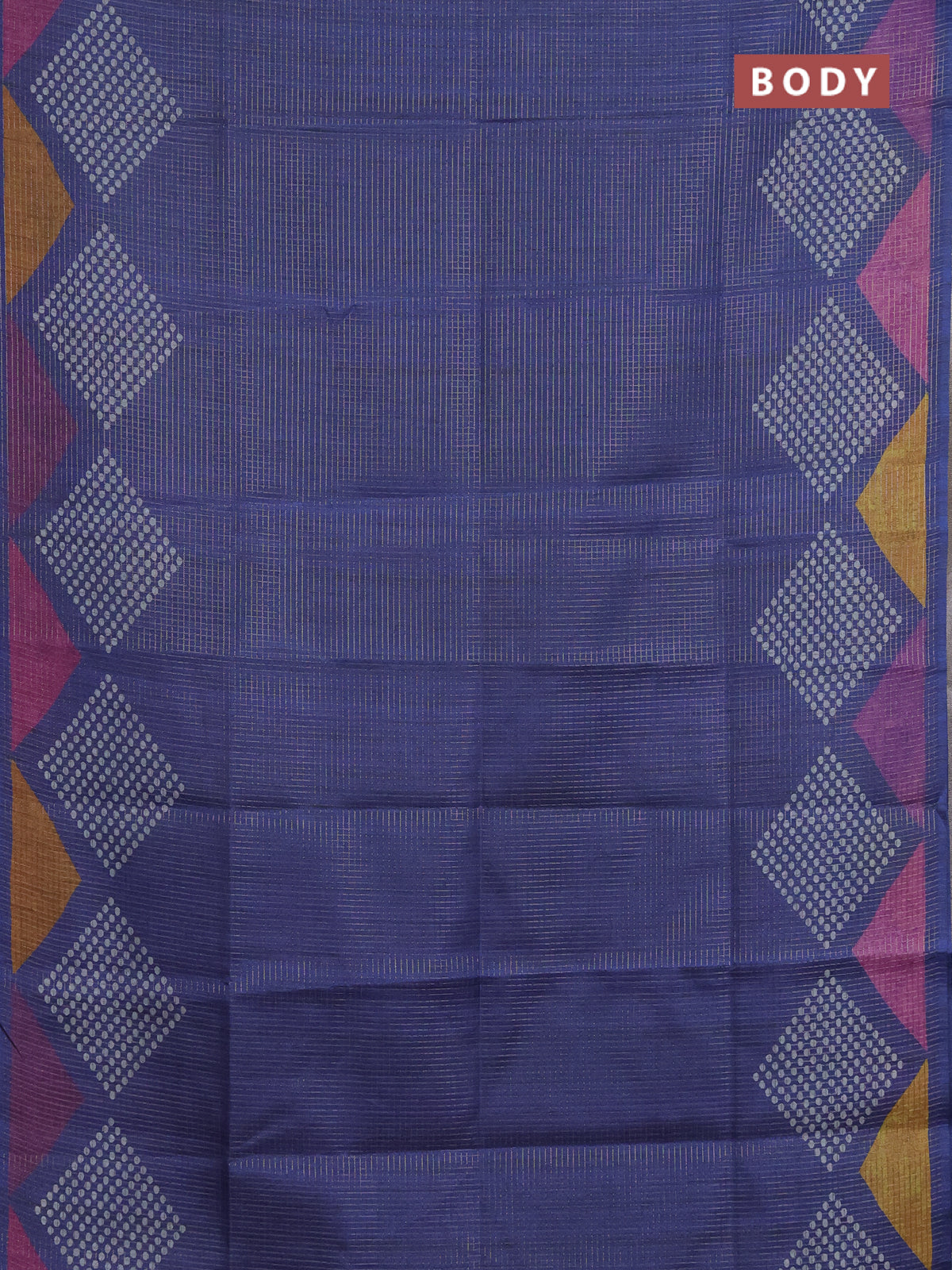 Chappa saree blue and grey with allover small zari checked pattern and printed border
