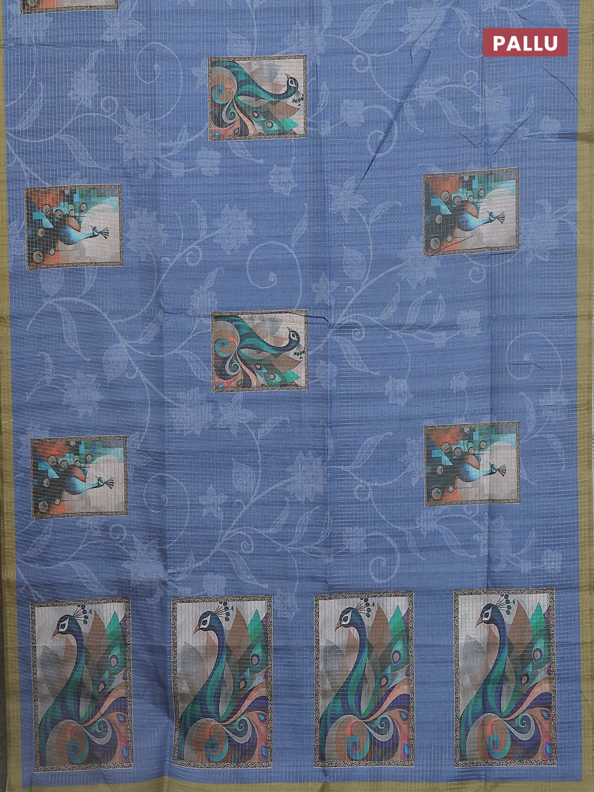 Chappa saree blue shade and mehendi green with allover zari checked pattern & digital prints and printed pallu