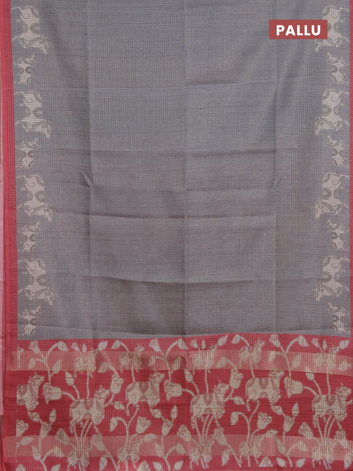 Chappa saree grey and maroon with allover small zari checked pattern and pichwai printed pallu