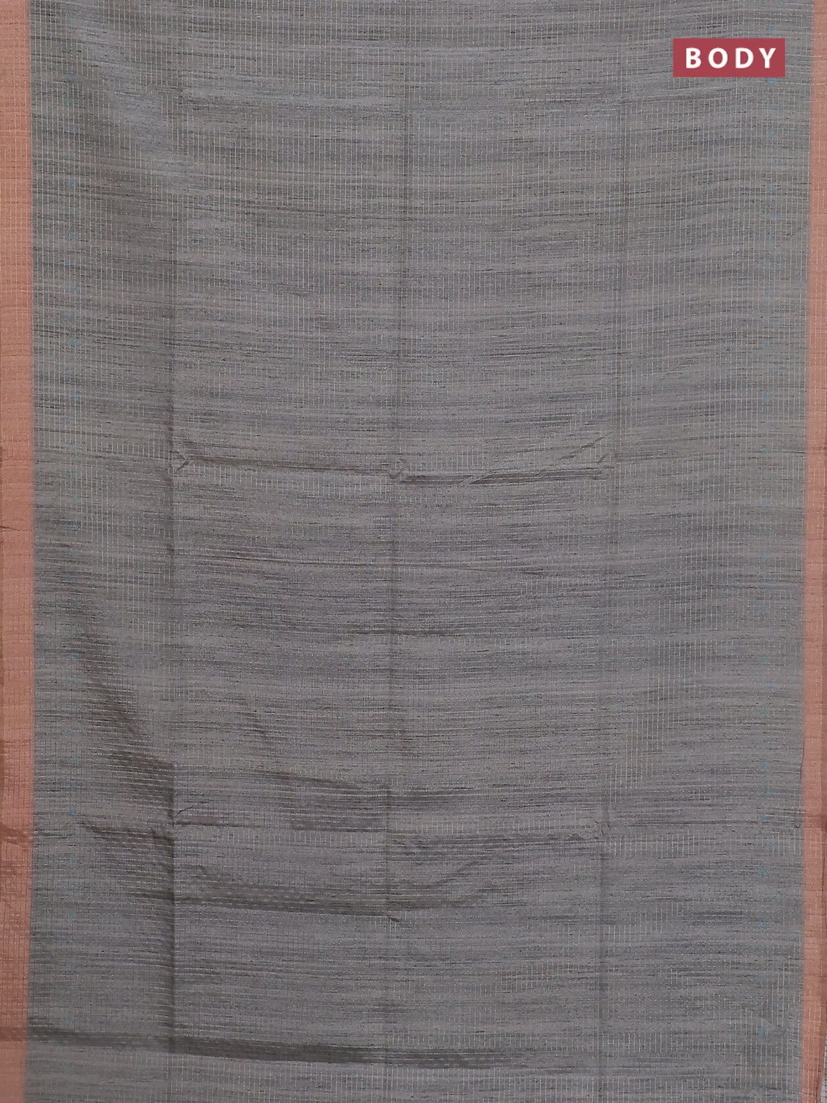 Chappa saree grey and peach shade with allover zari checked pattern and madhubani printed pallu