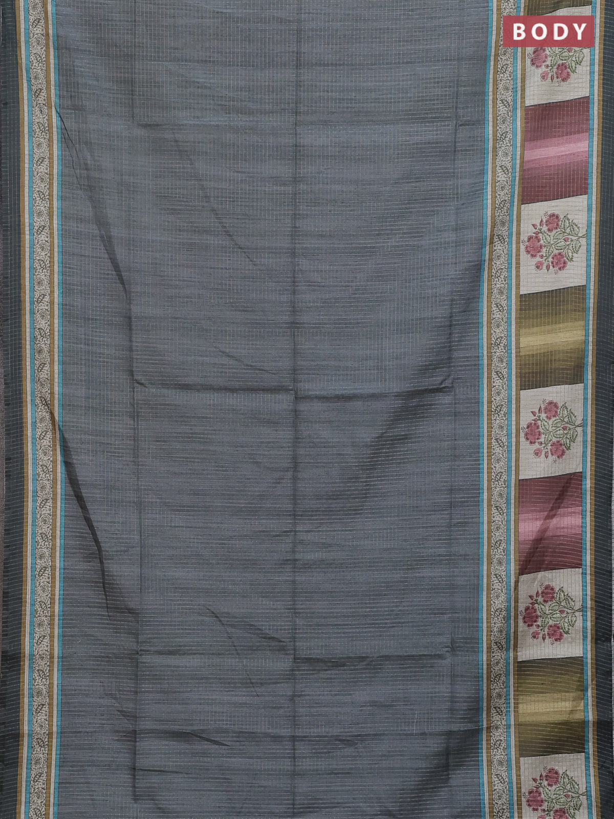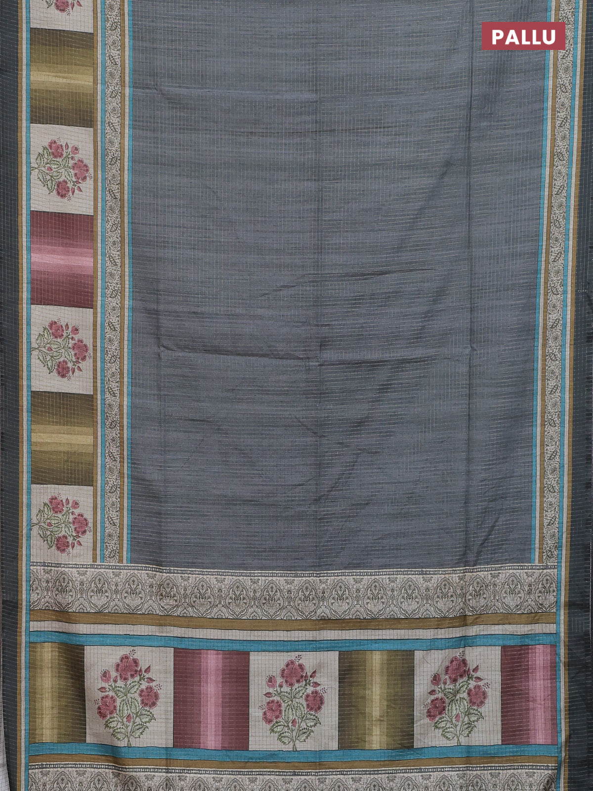 Chappa saree grey with allover zari checked pattern and printed pallu