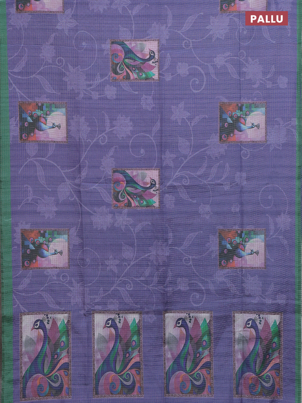 Chappa saree lavender and green with allover zari checked pattern & digital prints and printed pallu