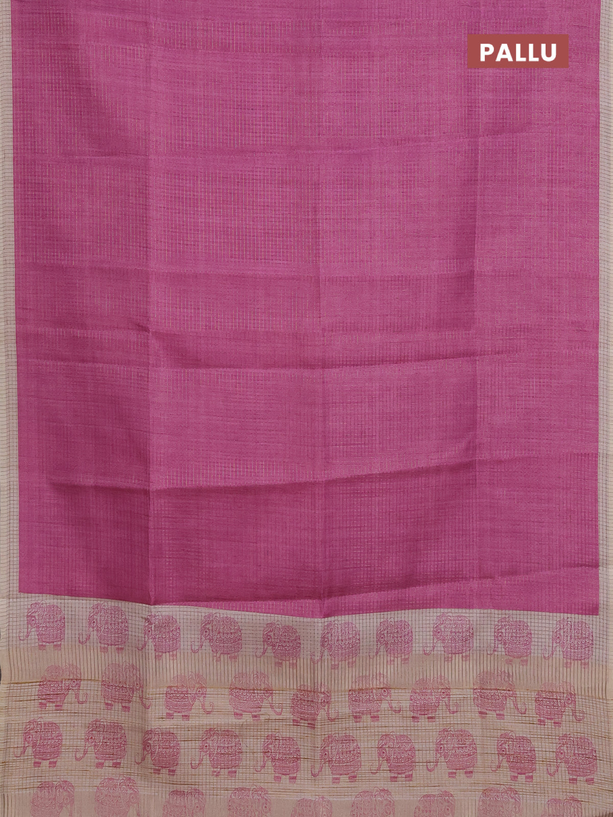 Chappa saree magenta pink and beige with allover small zari checked pattern and elephant butta prints