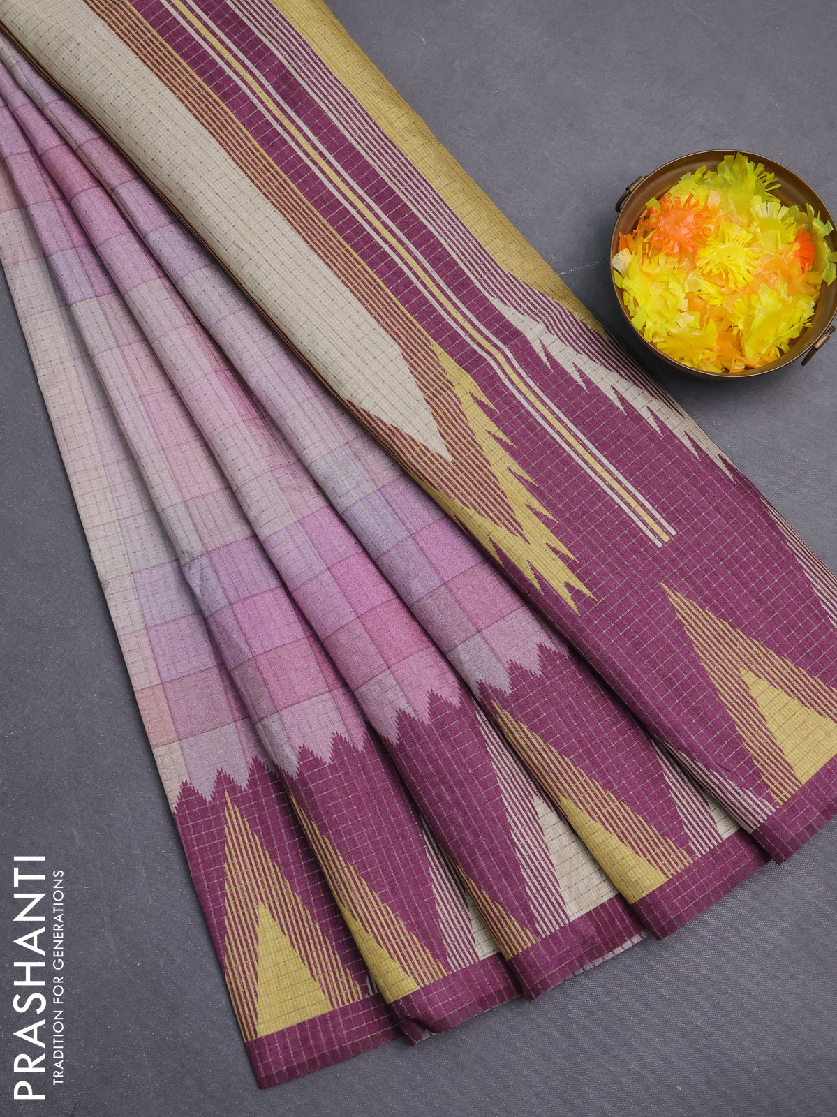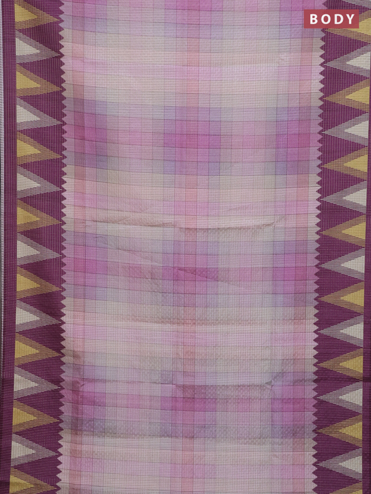 Chappa saree multi colour and wine shade with allover zari checked pattern and temple design border