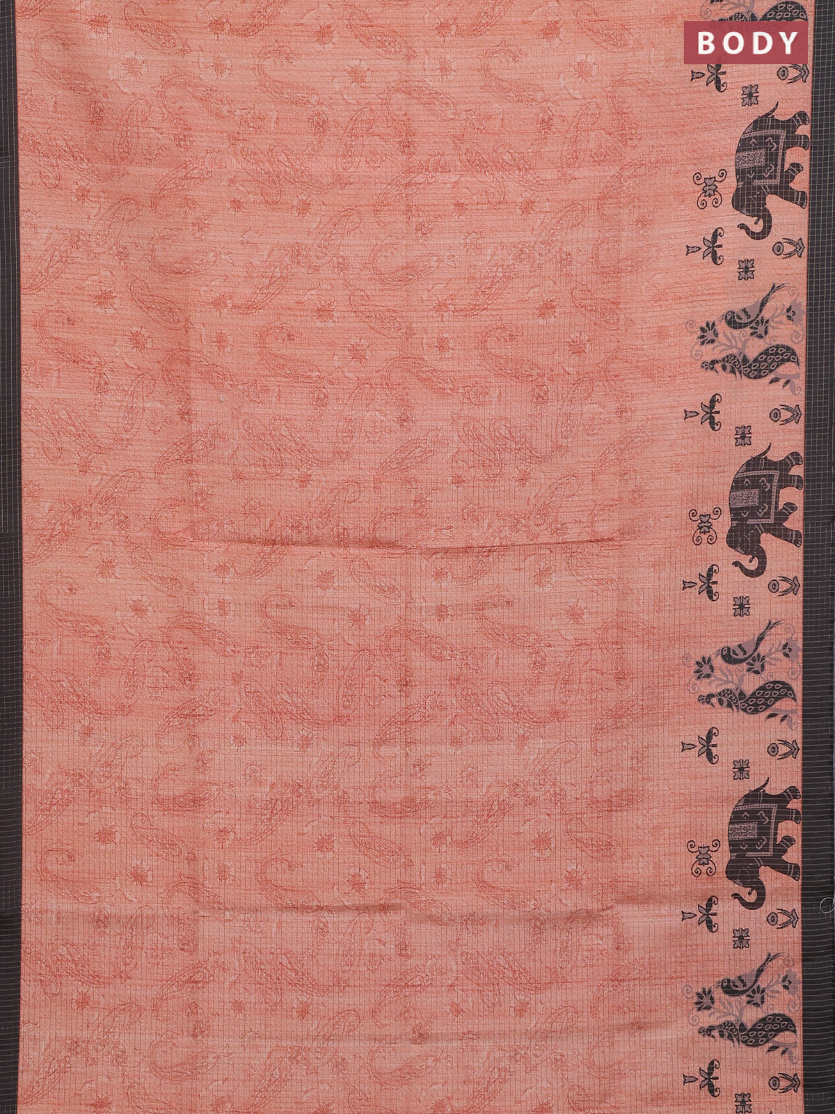 Chappa saree pale orange and black with allover zari checked pattern and printed pallu