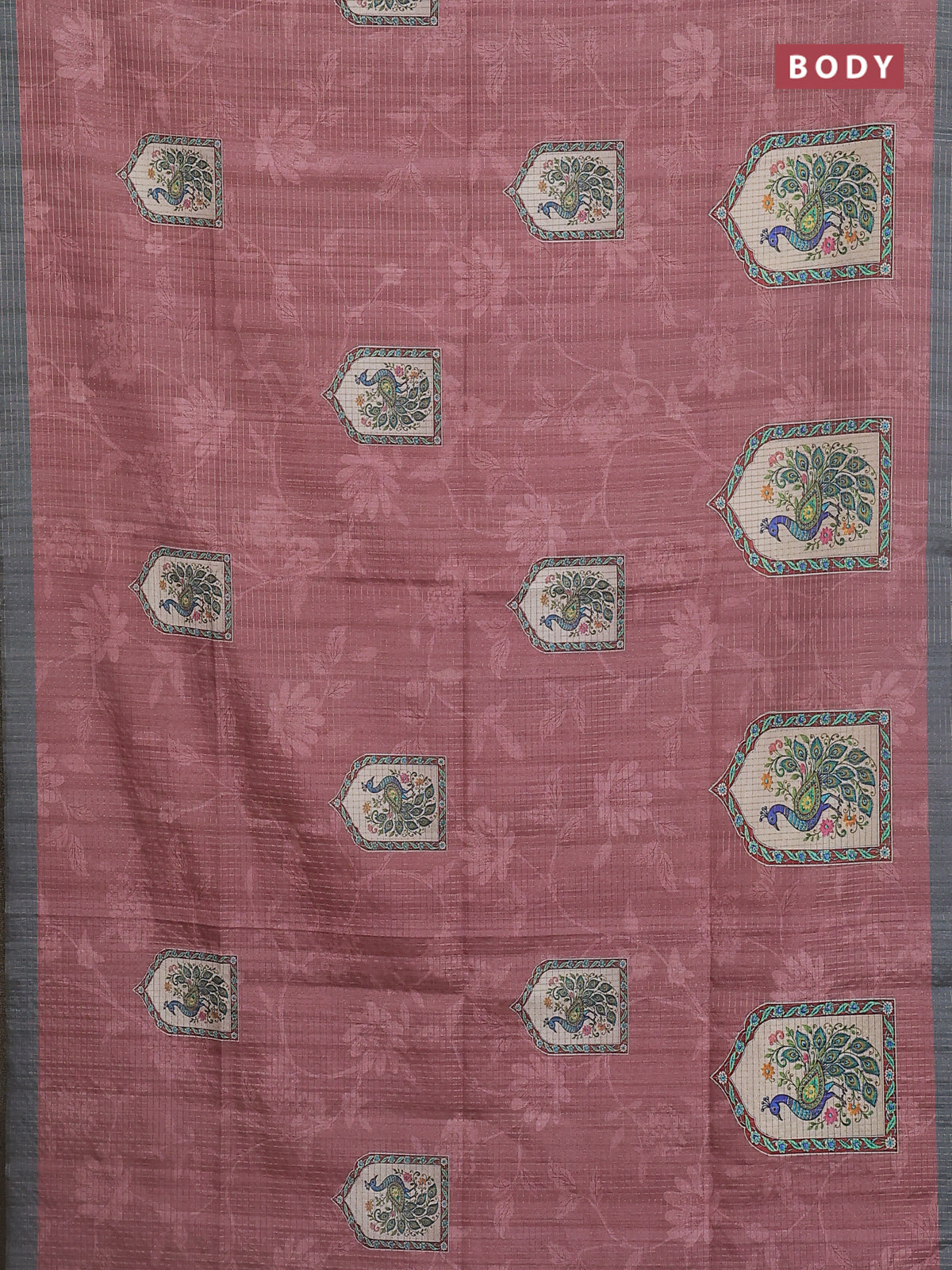 Chappa saree pastel brown and grey with allover zari checked pattern & digital prints and printed pallu