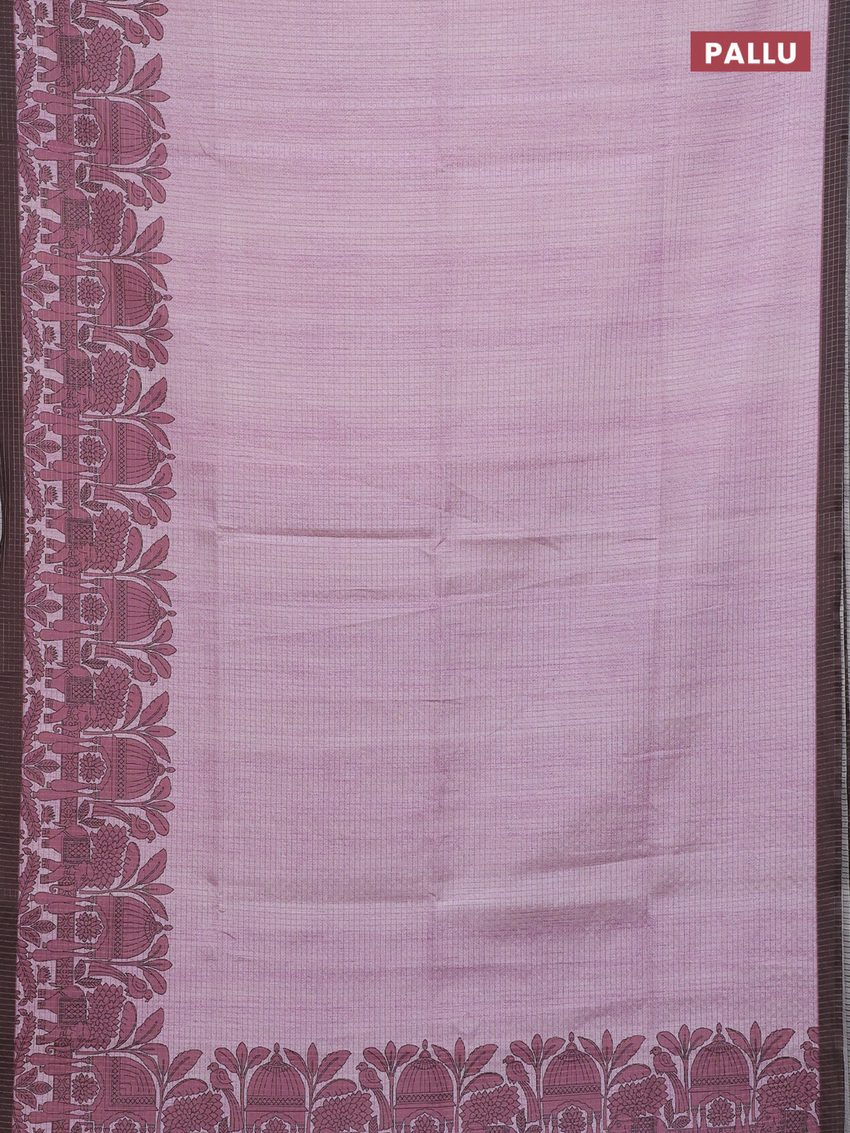 Chappa saree pastel pink and coffee brown with allover zari checked pattern and printed pallu