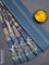 Chappa saree violet and peacock blue with allover zari checked pattern and printed pallu