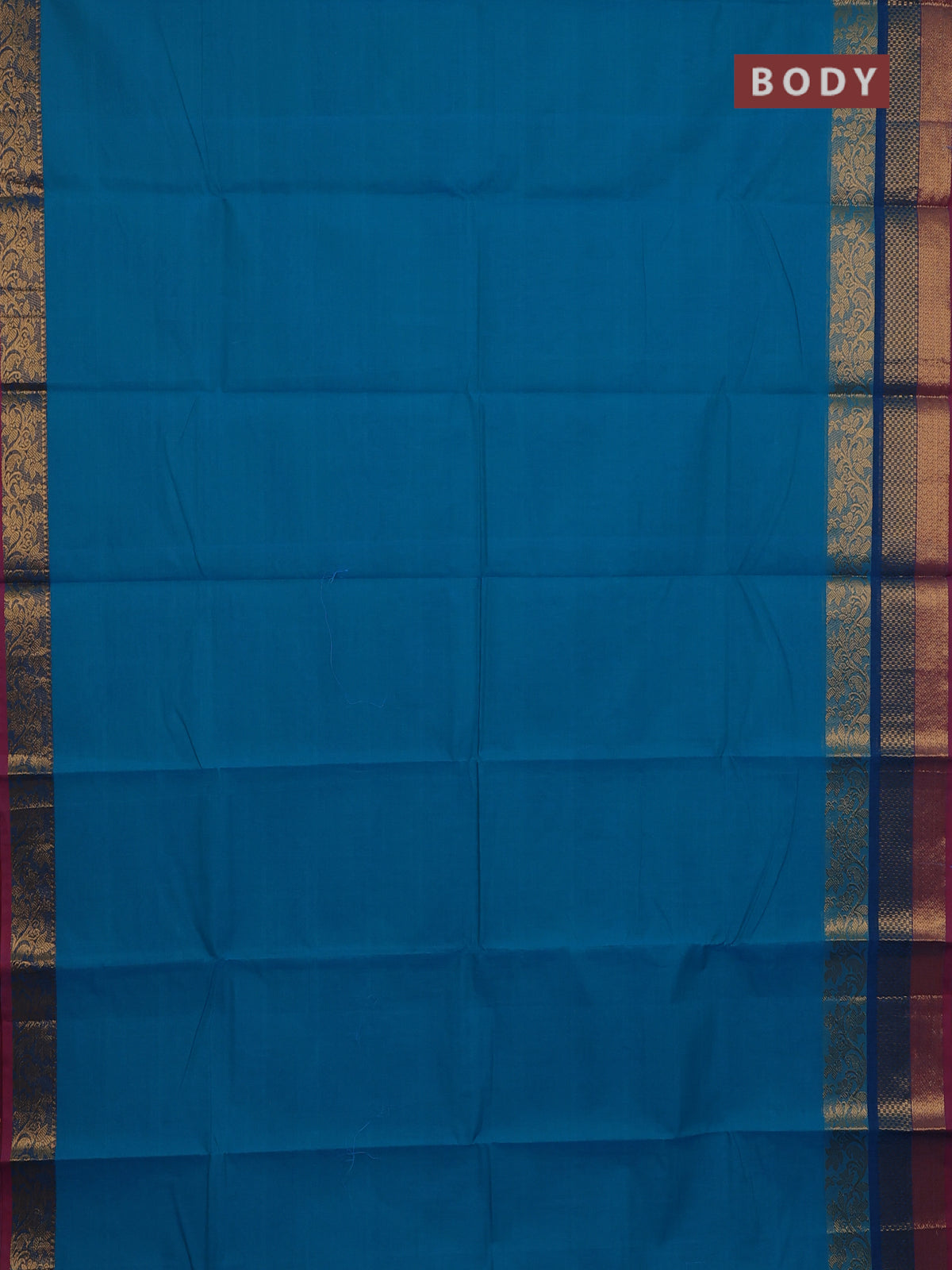 Chettinad cotton saree cs blue and purple with plain body and long zari woven border
