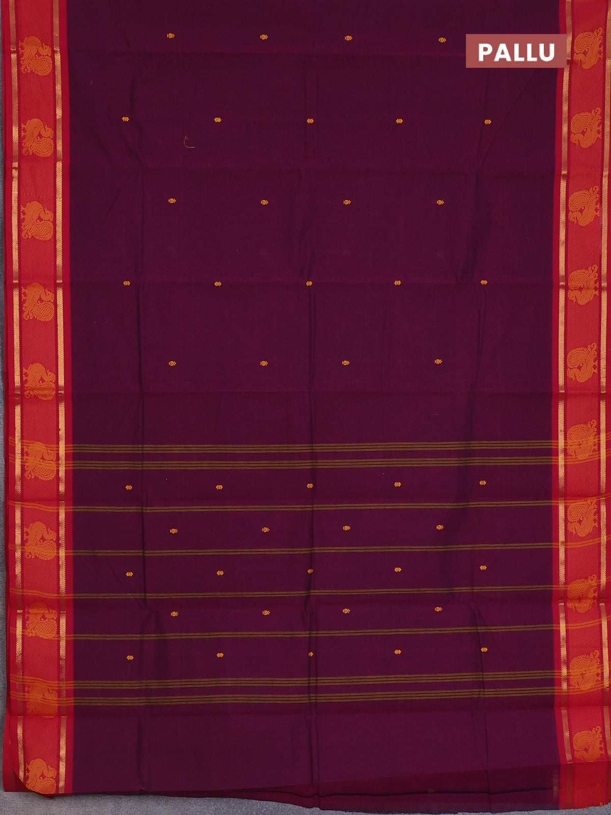 Chettinad cotton saree dark magenta pink and pink with thread woven buttas and zari woven annam butta border