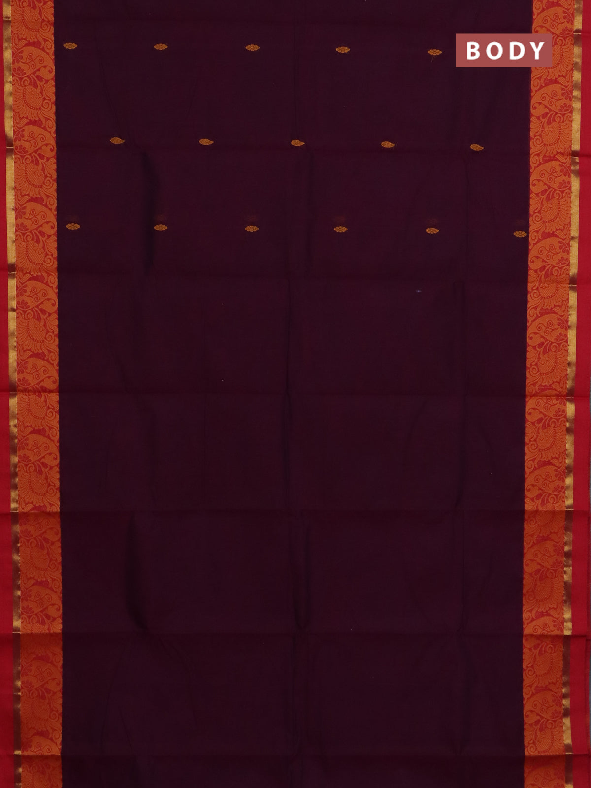 Chettinad cotton saree dark magenta pink and red with thread woven buttas and thread woven border