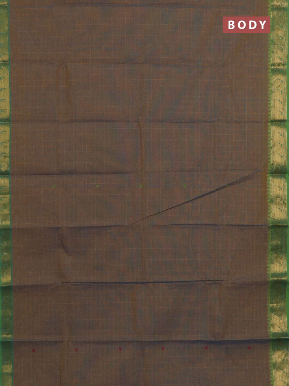 Chettinad cotton saree dual shade of bluish mustard and green with allover checks & buttas and zari woven muniya style border