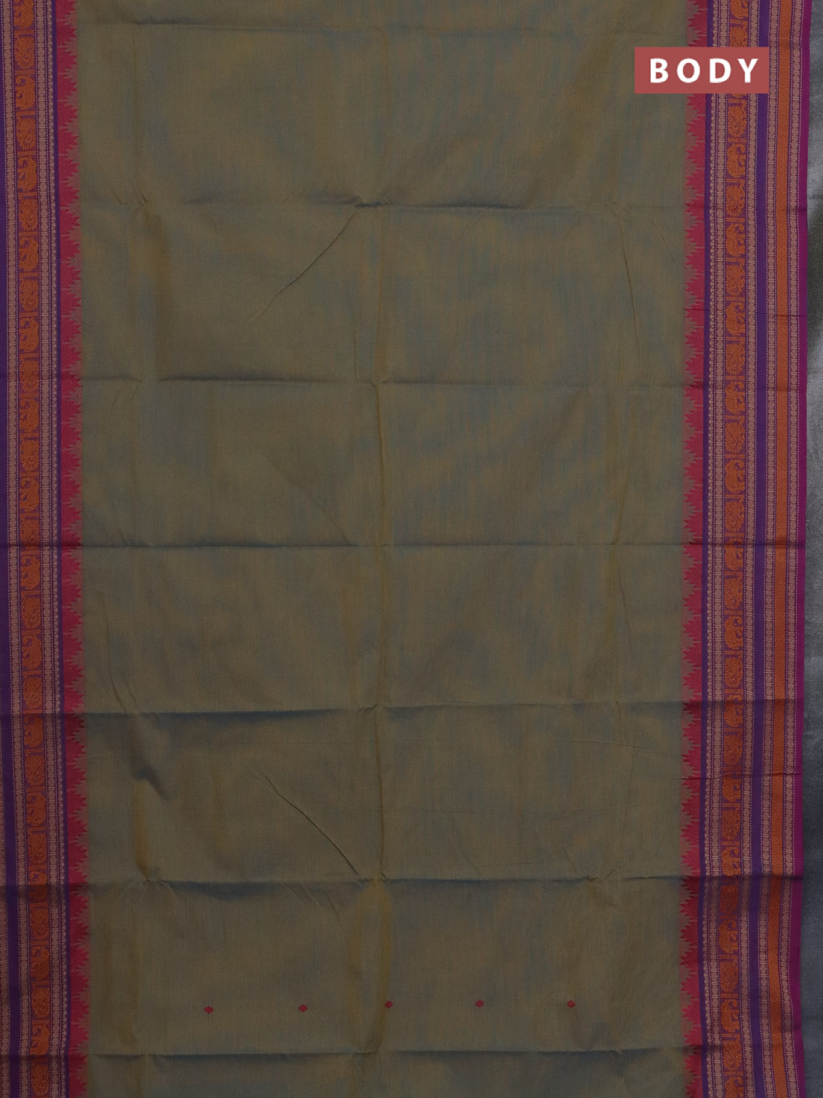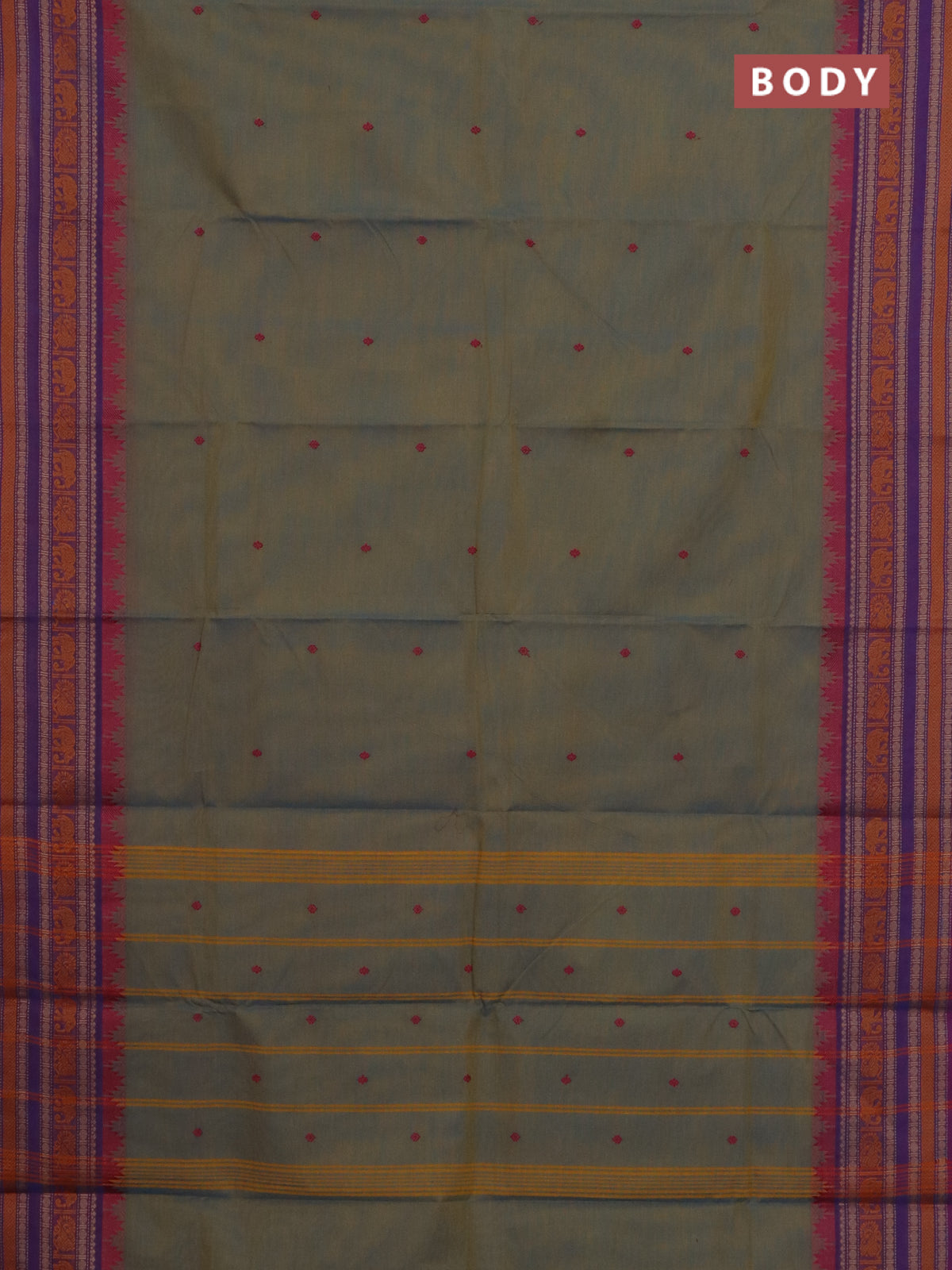 Chettinad cotton saree dual shade of bluish mustard and purple with thread woven buttas and thread woven border
