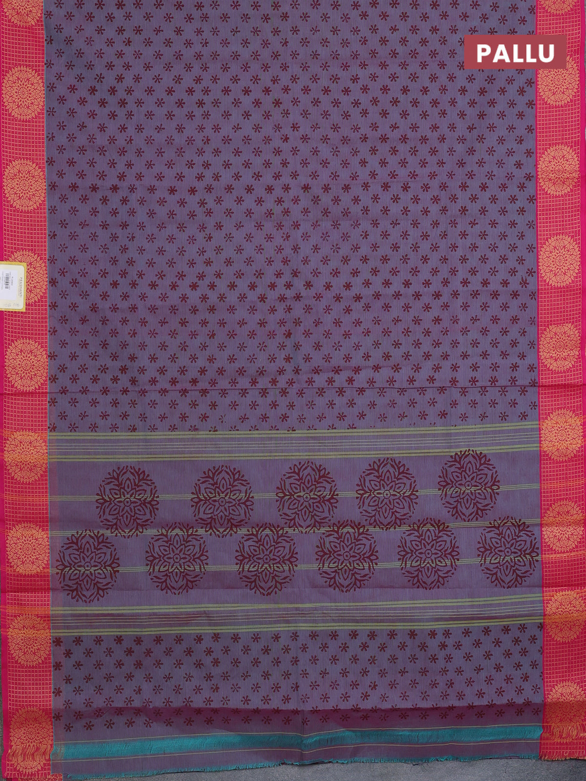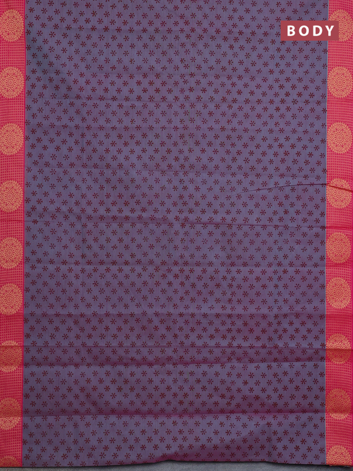 Chettinad cotton saree dual shade of bluish pink and pink with allover butta prints and thread woven border