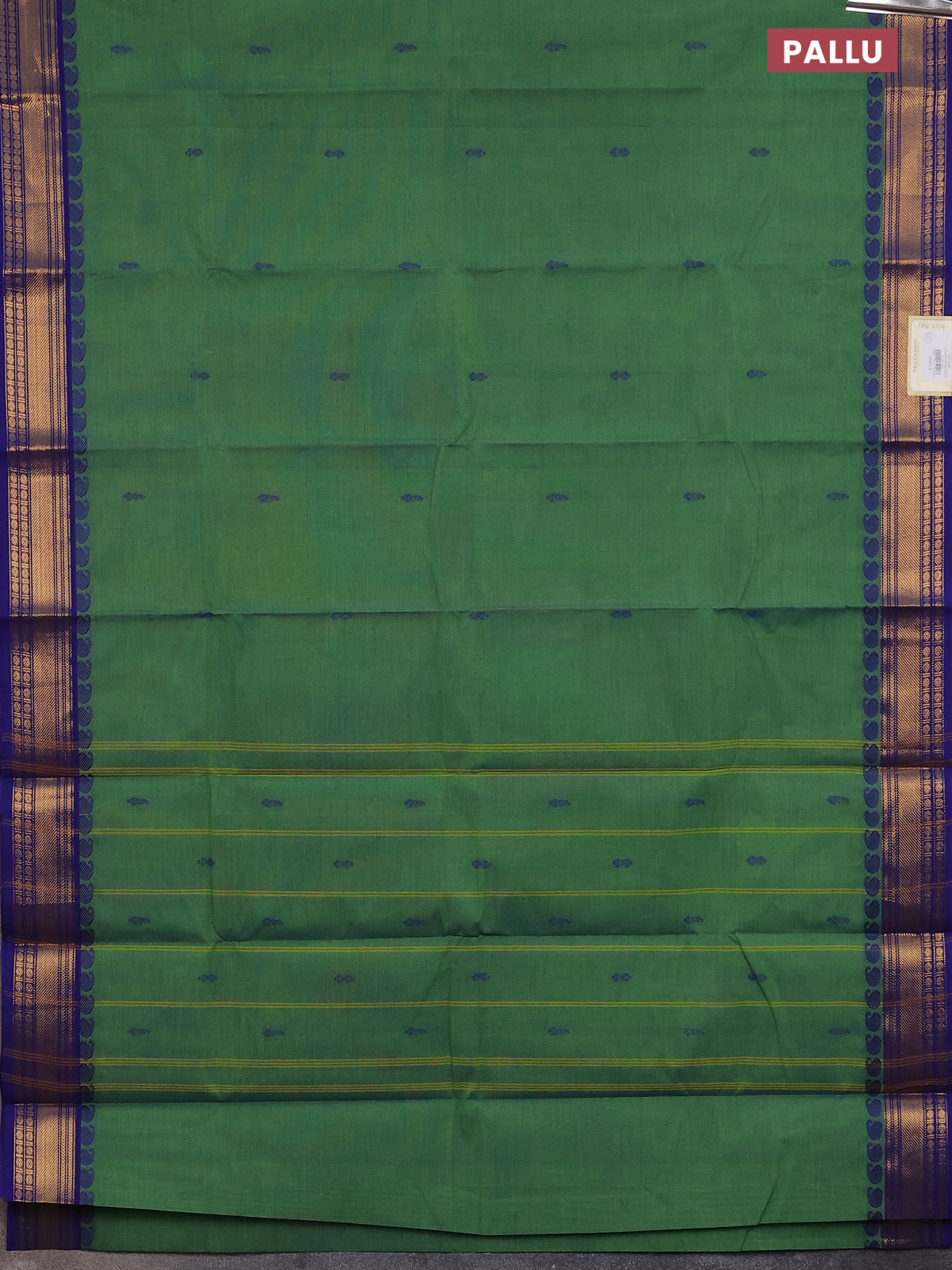 Chettinad cotton saree dual shade of green and blue with thread woven buttas and zari woven border